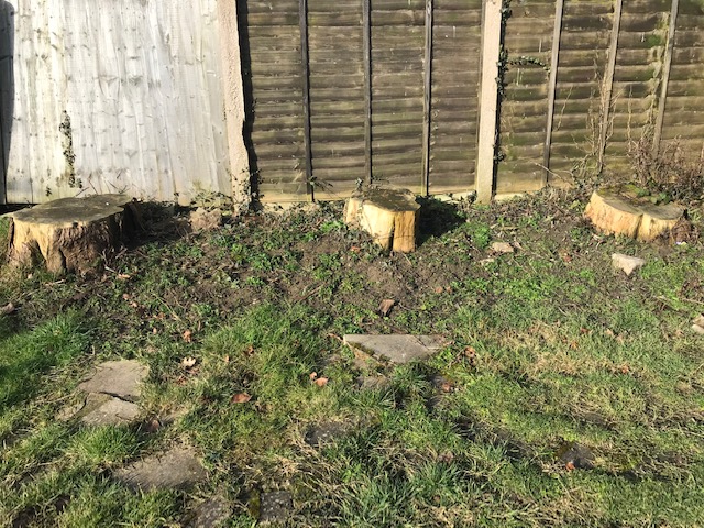 So what have we been doing? Well planning mostly, thinking of the best lay out for the garden. We have collected pallet collars of a few different sizes that we will use for the raised beds, and we have also been trying very very hard to decide the best way of getting rid of these bad boys-
