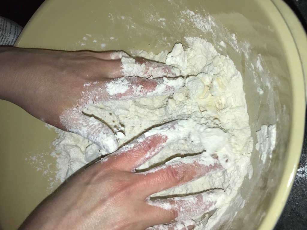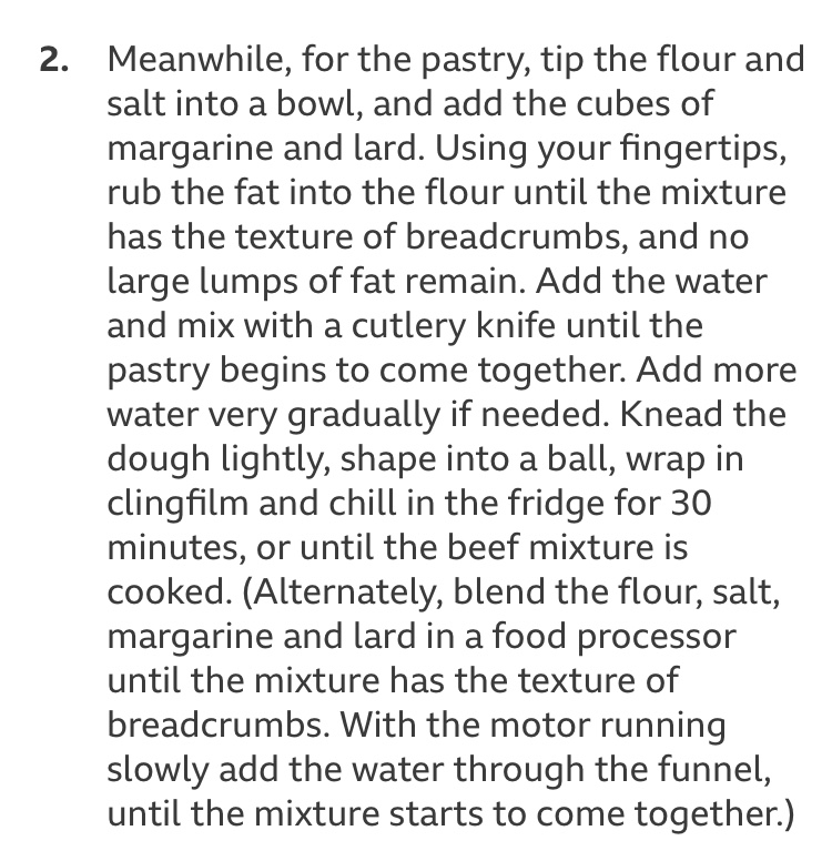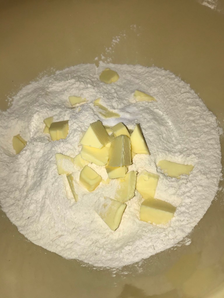 So I followed the recipe to a T, and rubbed the butter and lard into the flour and salt to make breadcrumbs.