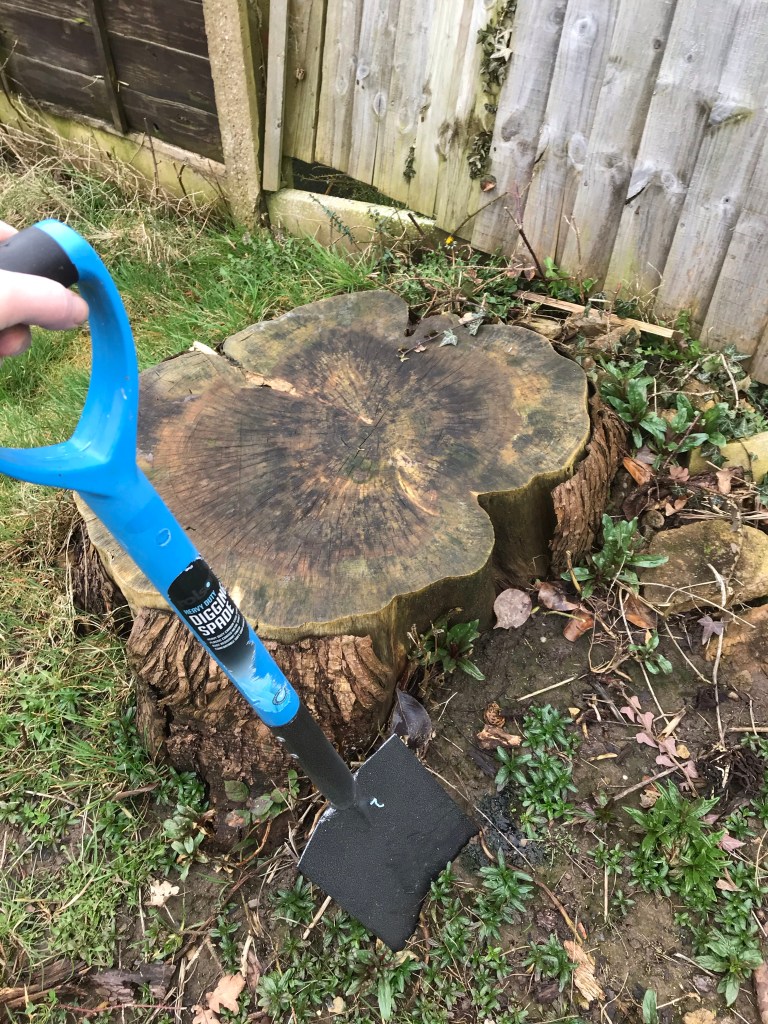 There are a few stumps in the garden, 3 huge ones, a smaller one, a really tiny one (that Tony knew was there and I didn’t, but made me add it to the stumps count because he removed it with a few chops of his spade) and another small one that will probably not need to be dug up because of where it is.