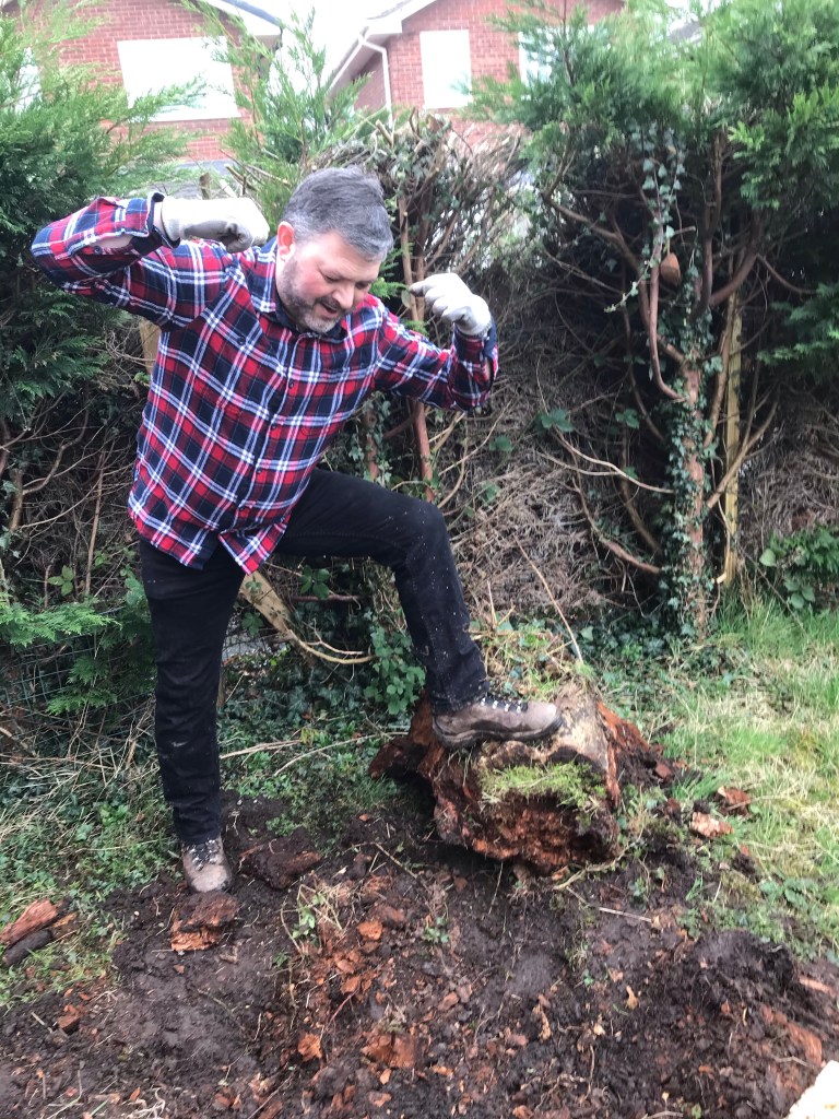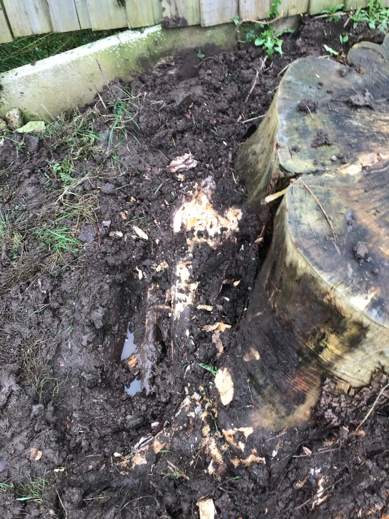 I made the worst ever executive decision to go for the biggest and baddest stump in Tony’s absence. I had made a start first and got rid of a tonne of rubble that was in the soil.