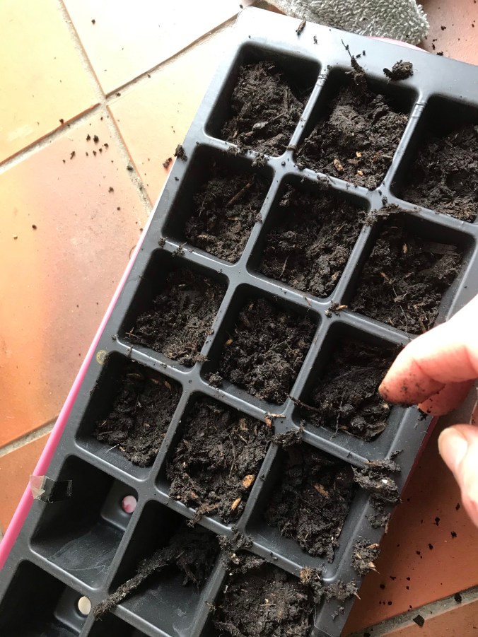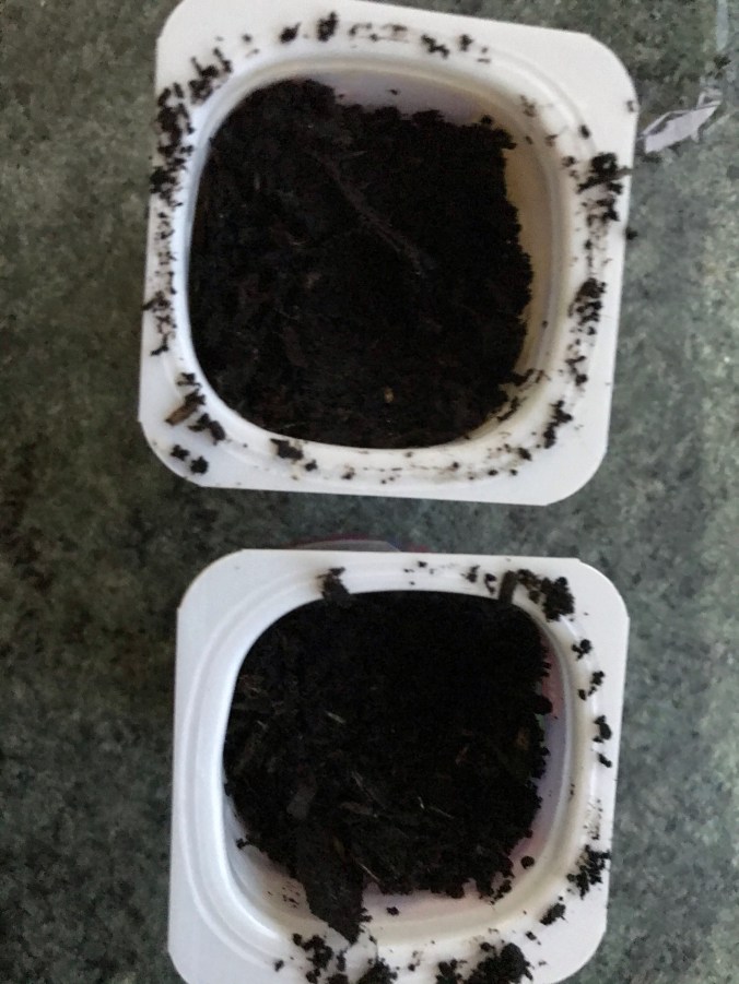 We also tried out a wild card just for fun, and planted some satsuma seeds. I decided yogurt pots would be a good idea to start them off. So after eating some yogurts, I made a small drainage hole and popped some compost in the pot, and planted the seed. Reading up it said you needed sand too, but well I didn’t have any so compost it was.