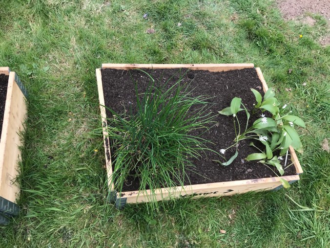 We started off some more herbs in the small raised bed with the Chives and Wild Garlic, Dill, Parsley, Sage and Thyme. In the last small raised bed we started off some Sprouts.