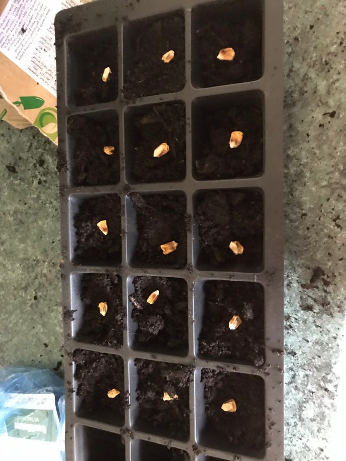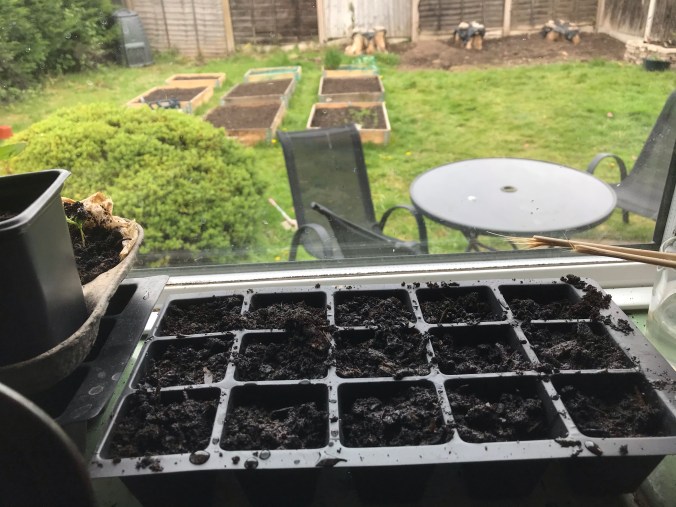 We started off the sweetcorn in seed trays, to get them going before planting out. Tony has made a trellis for the peas, so that will go in tomorrow and then we can start the peas off.
