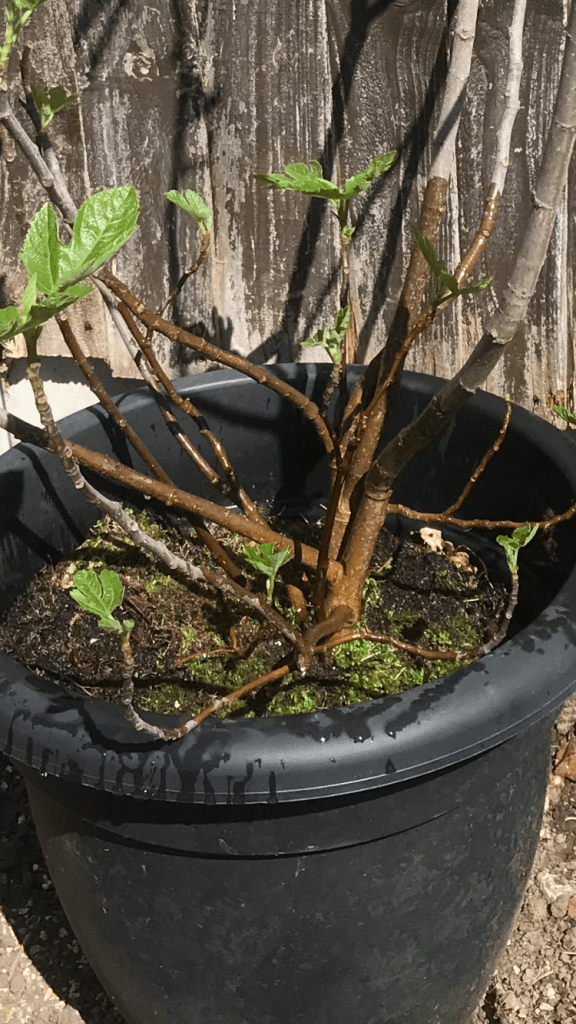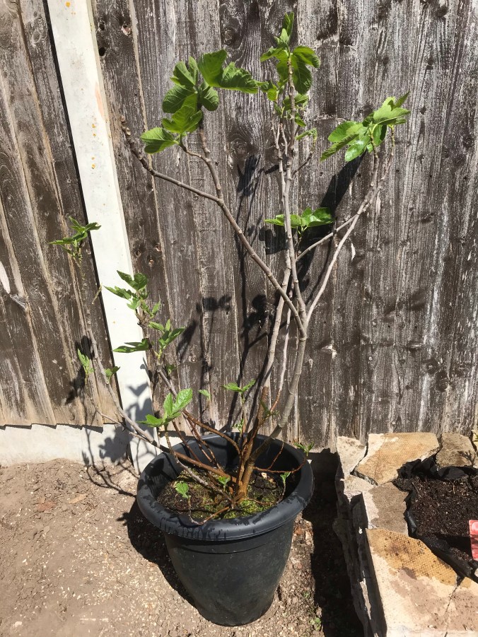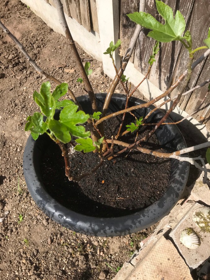 We got a new addition to our fruit trees on Tuesday, with our newly acquired Fig tree. It came well established and just needed the weeds removing from the pot. Once the weeds were removed we added some crushed egg shells then just topped up the compost and gave it a good water.