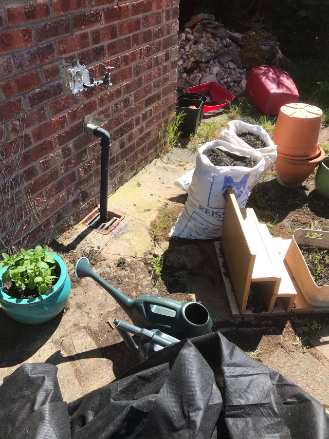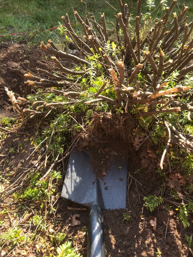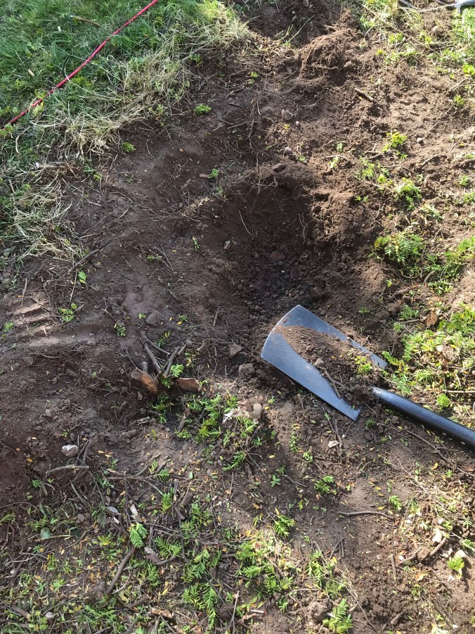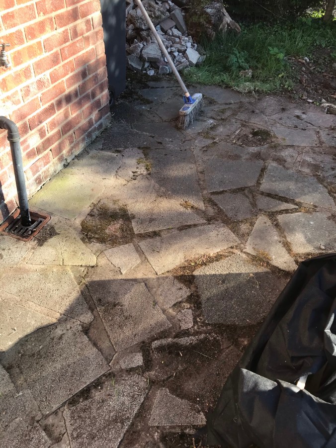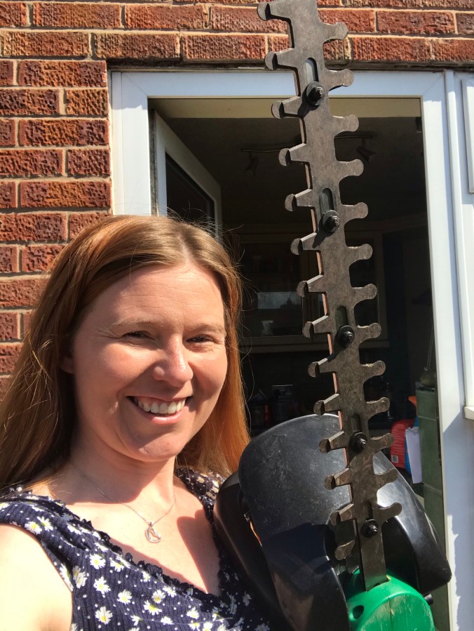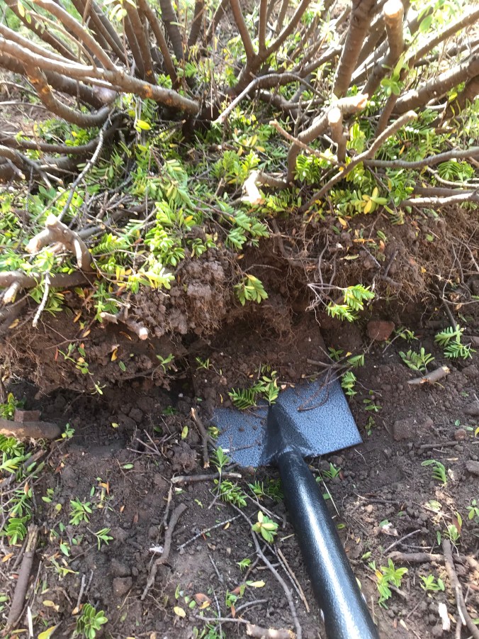 I decided to get the hedge cutters out with the purpose of trimming back the Camellia bush, but decided to attack the weird bush/ over grown weed that I really hate instead. So what started as a little trim to cut it back, ended up as a full blown excavation, it had to go! I never did get round to the camellia bush.