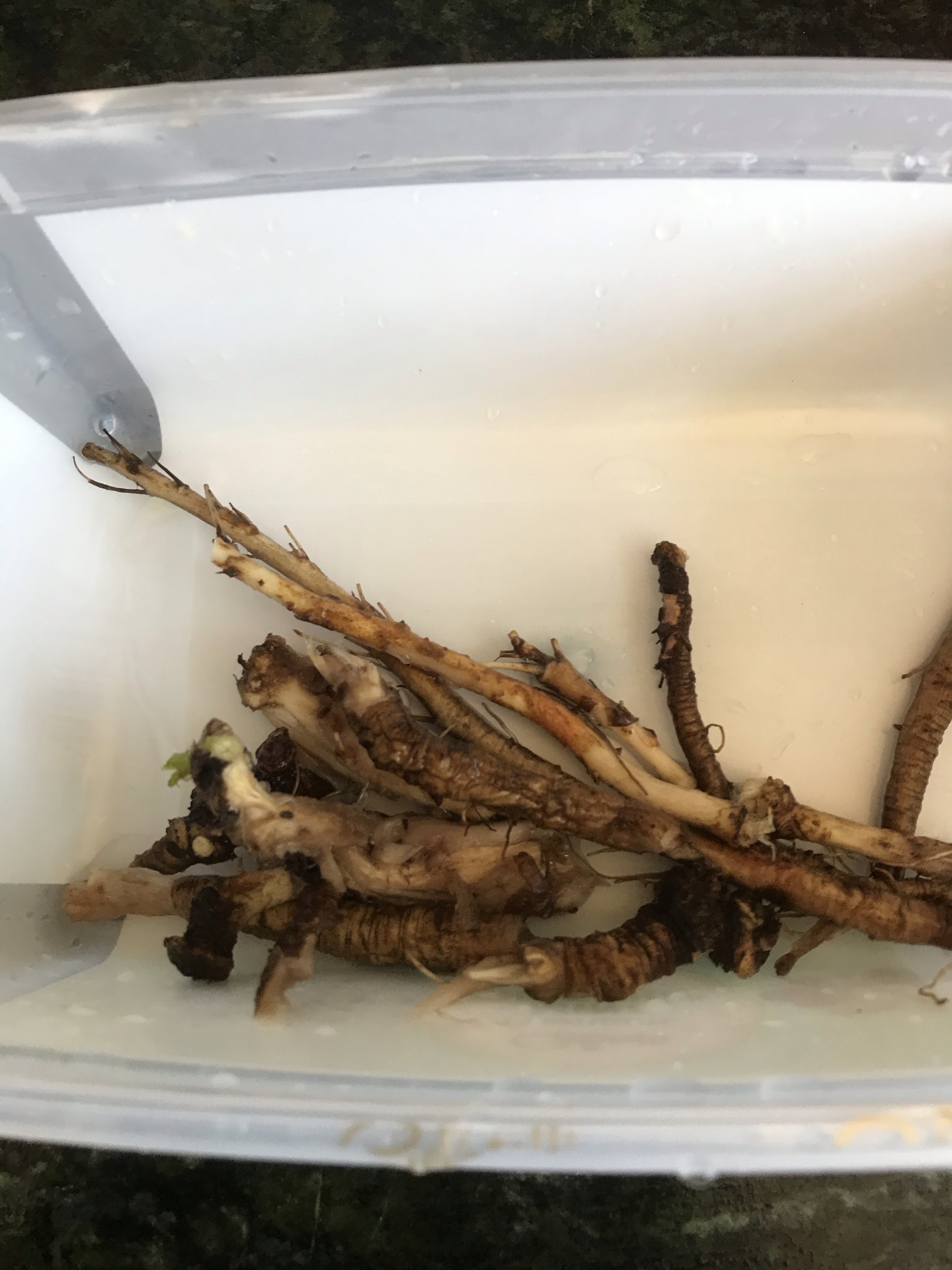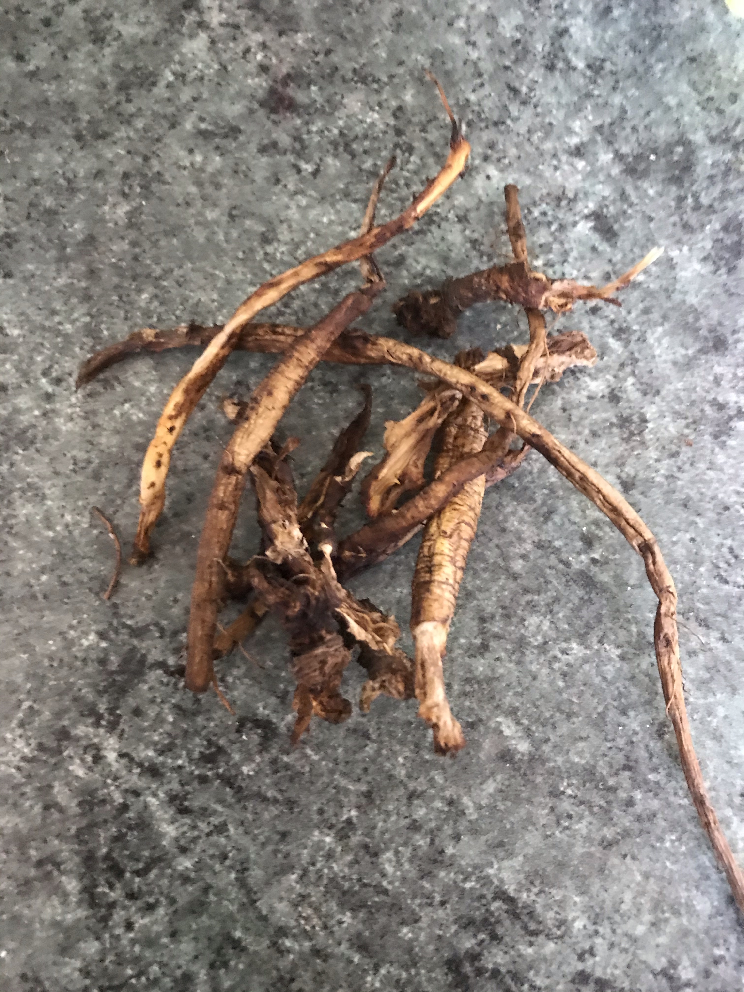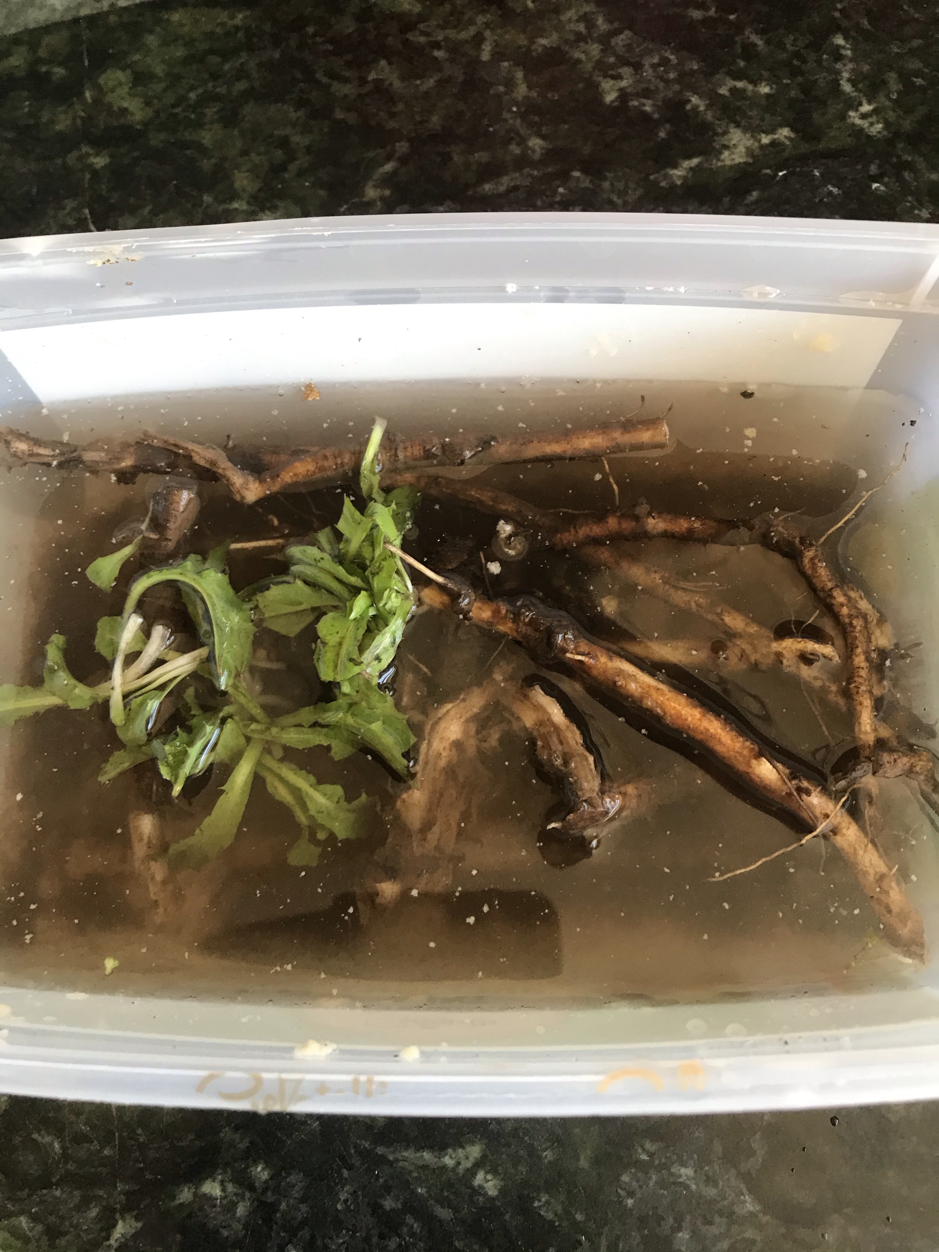 One thing we have in abundance is dandelions, so I dug up a few smaller roots and gave them a scrub.