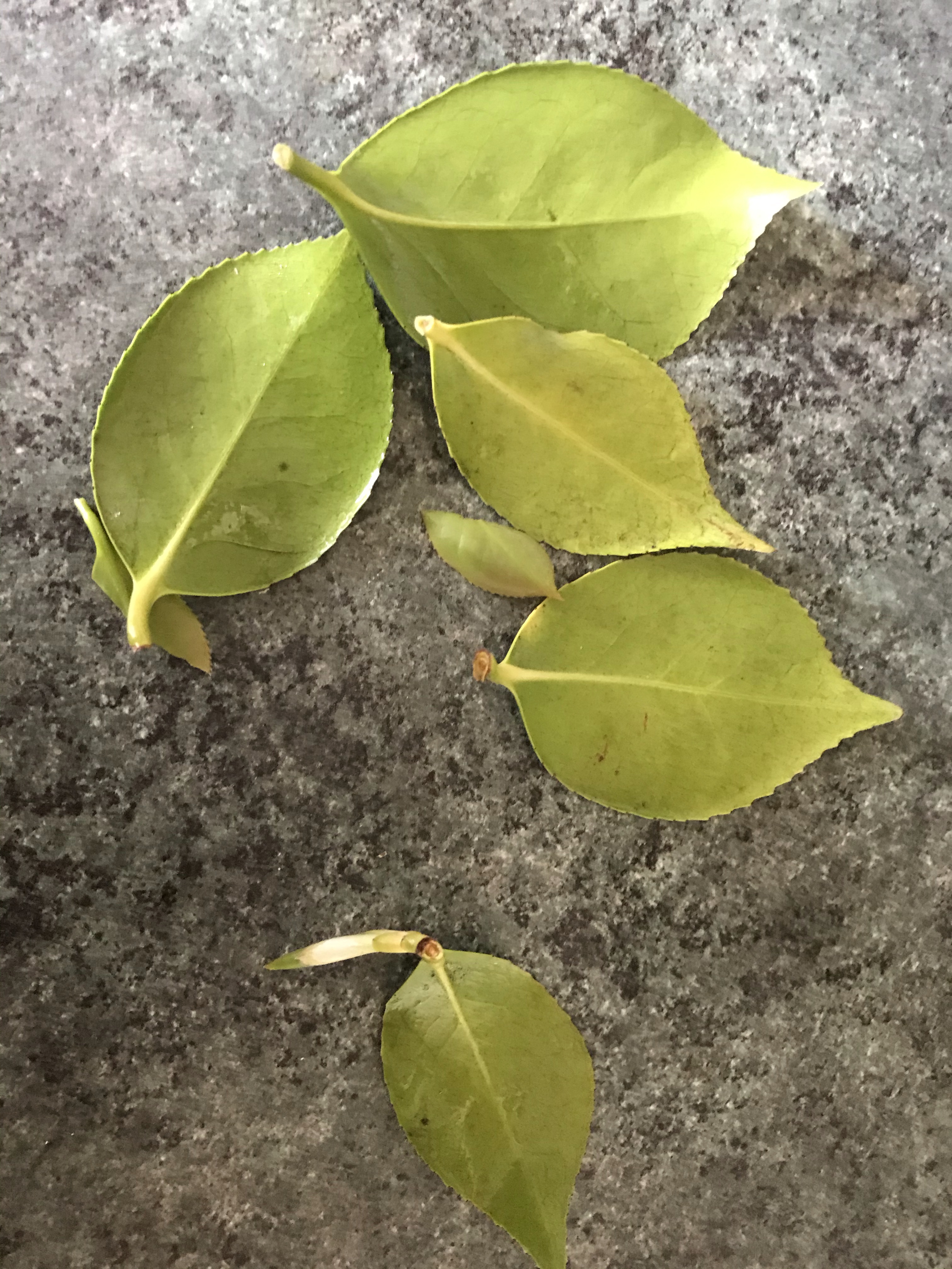 After a bit of reading online I came across the tea plant Camellia Sinensis, which of course we don’t have. But, we do on the other hand have a very large Camellia Japonica bush in the back garden. So after a very small google search, it turns out you can make tea with all Camellia. So I went and picked a few leaves.
