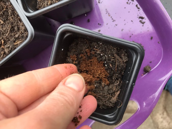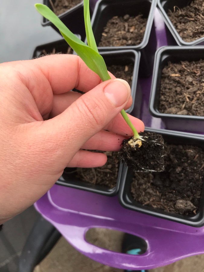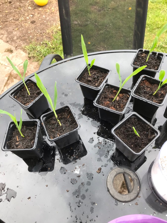 Today I decided some of the sweetcorn needed re-potting. I left the smaller ones in the seed tray, and re-potted the ones that were further along.