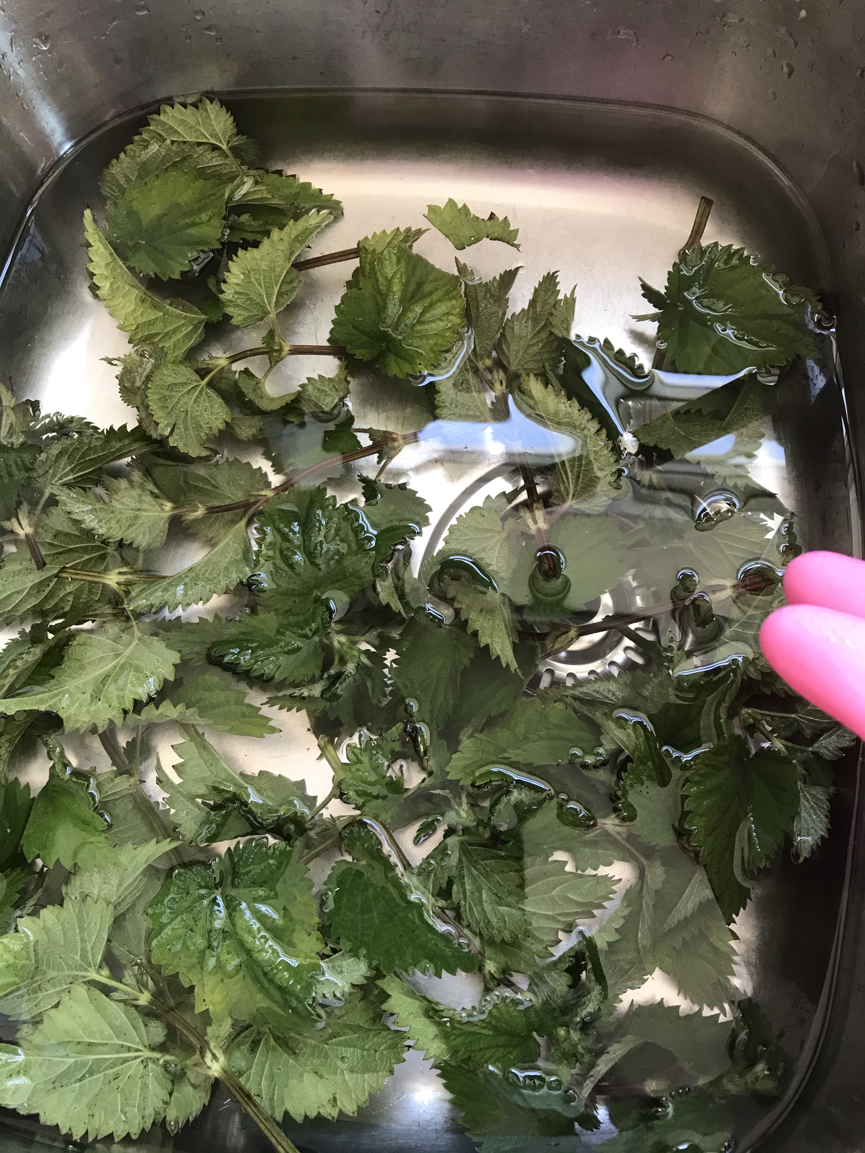When I got back, pulling on some rubber gloves, I put them straight into the sink full of water to wash off any dirt and bugs. I couldn’t believe how many bugs of all kinds floated off them! There was hundreds of everything from spiders, ladybirds to green fly. I ended up running them under the cold water because leaving them sat in the water was not doing an awful lot. Once they were bug free I still left them for a few hours in the water just to be sure I had got them all. The nettles were great, they didn’t go soggy like I though they might.