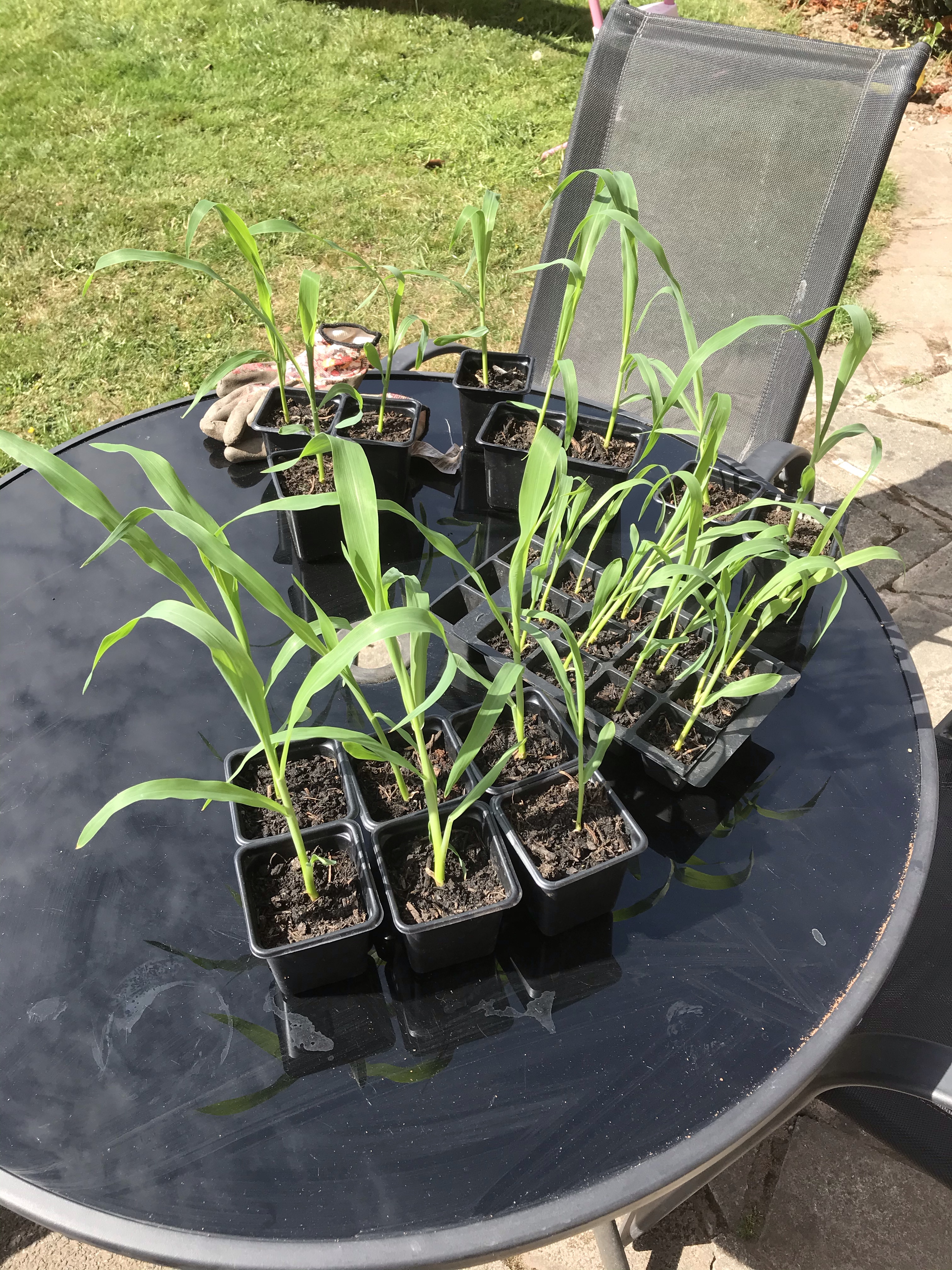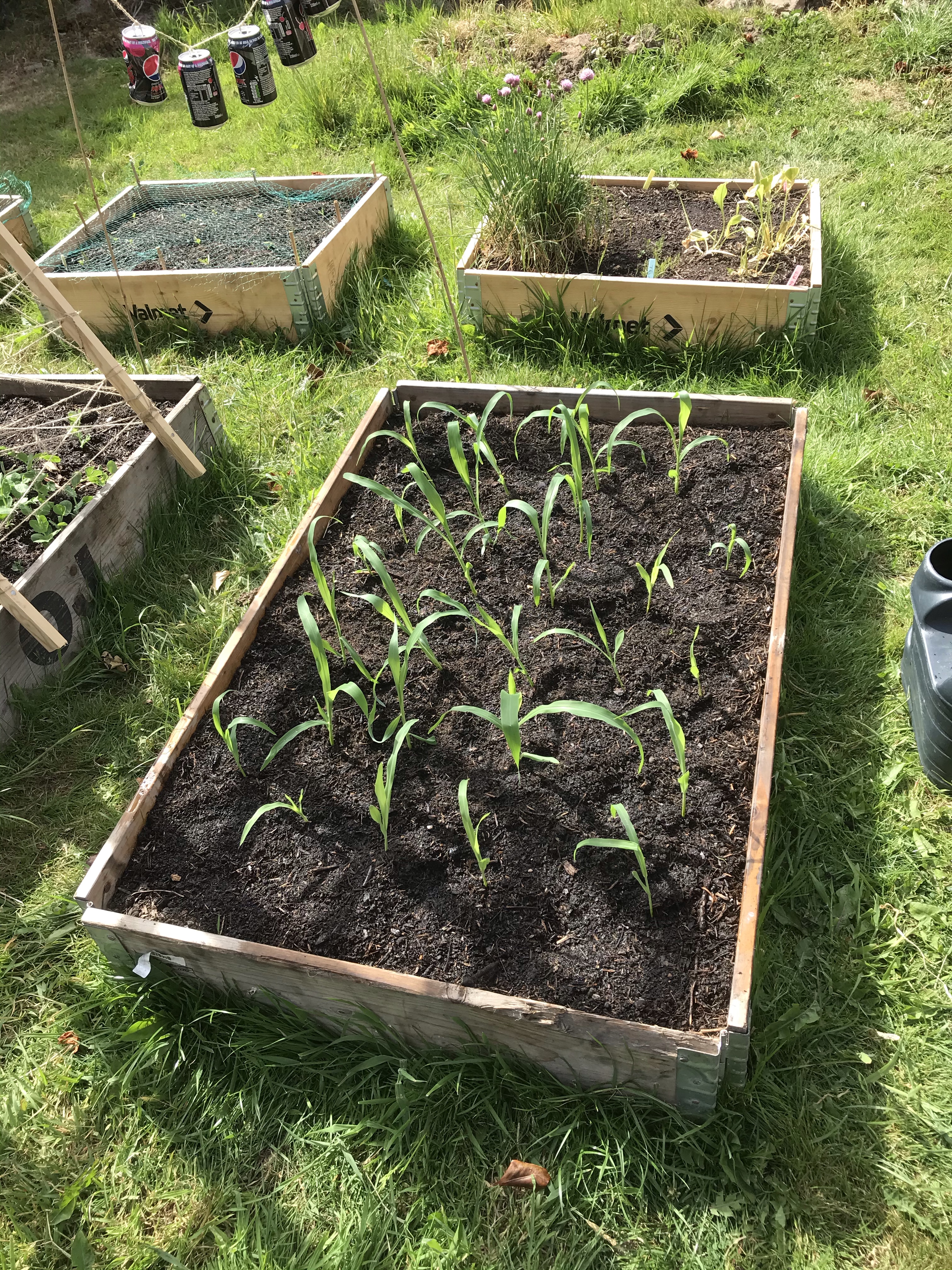 The Sweetcorn has now been planted out into the raised bed. It’s a good job we waited, as the pea trellis falling would have squashed them all. Just hoping the birds will leave them alone now, here’s to hoping 😂.
