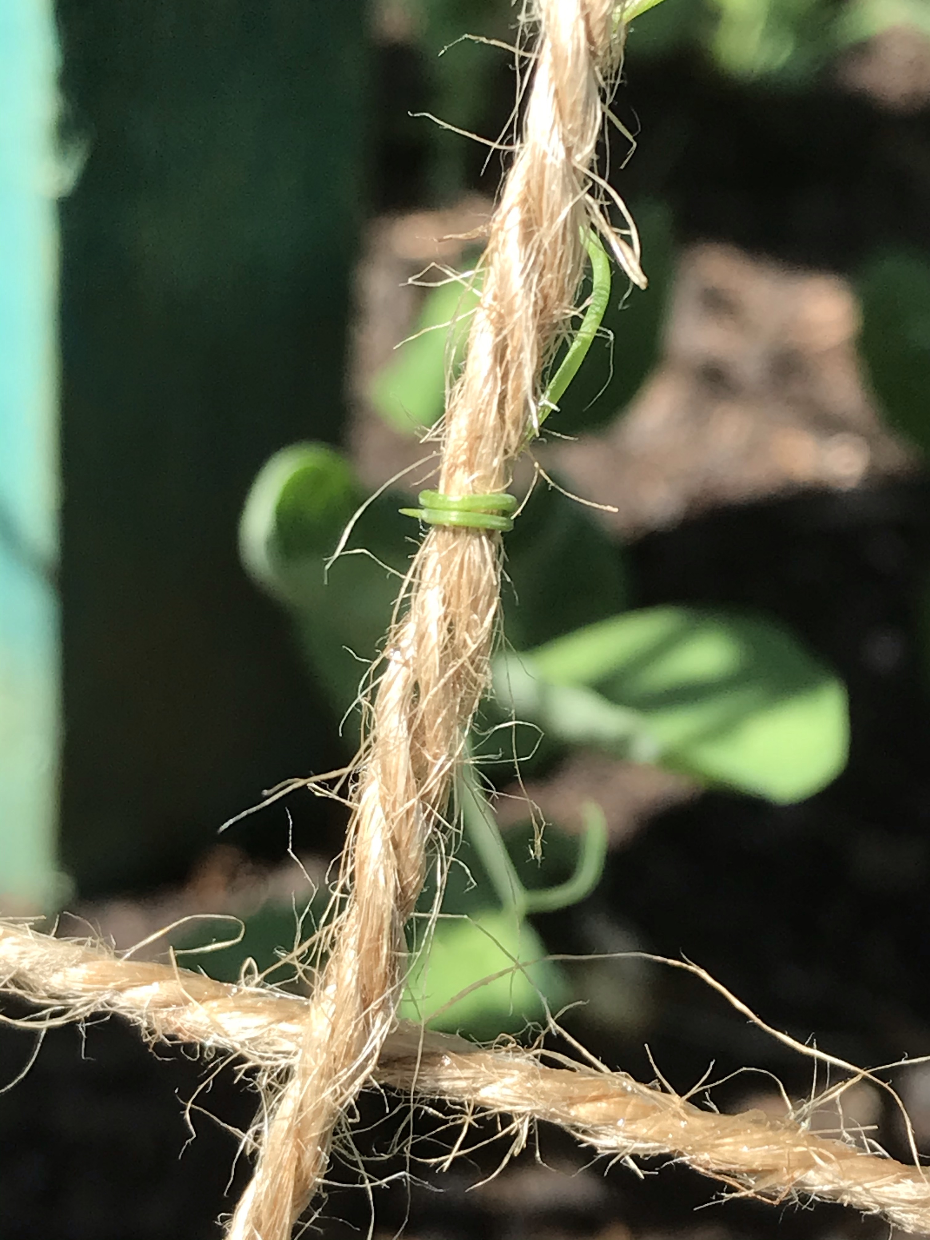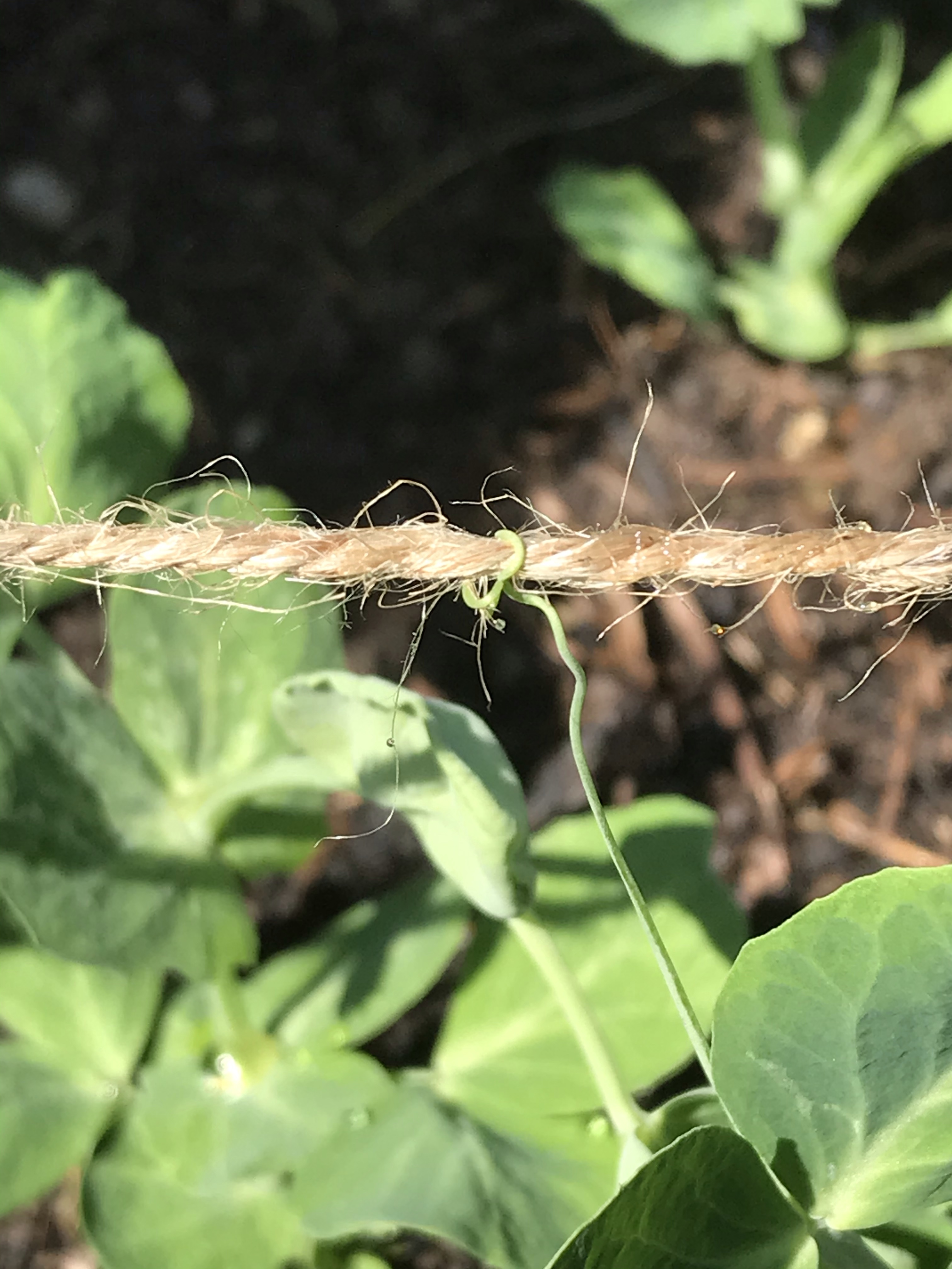 The peas are staring to cling to the string now, starting to climb up. These might just be my favourite to watch grow.