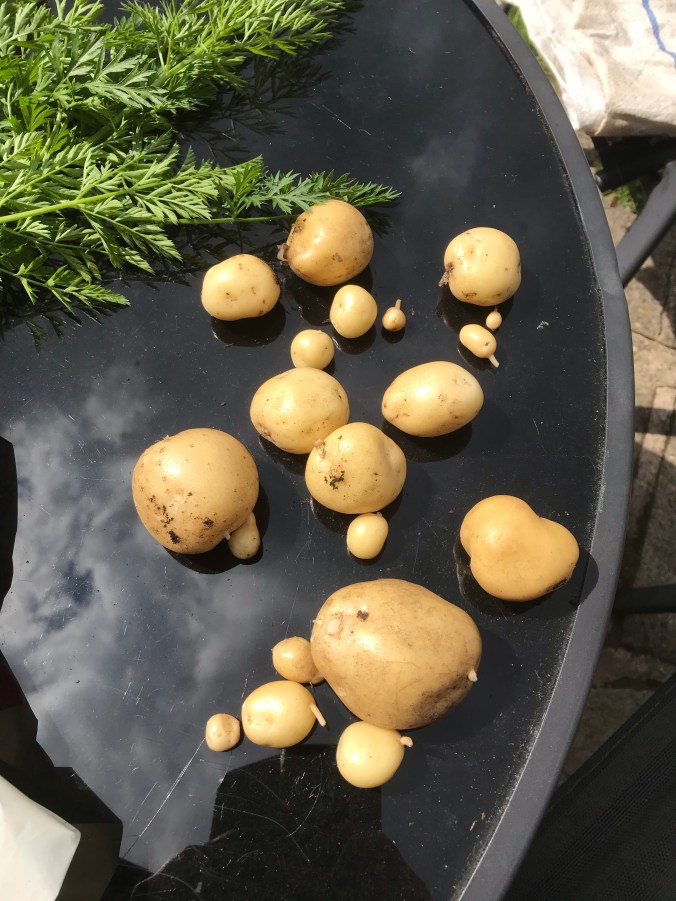 We decided to try out one of our potato sacks, seeing as it had flowered and the leaves were looking a bit droopy. It turned out to be way to early so we ended up with new potatoes and not many of them at that. But they were the tastiest potatoes I think I have ever eaten.