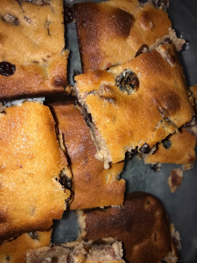 We also collected some plums, which I stewed and put into Jars to use a later date. I had some stewed plums left over, so I soaked mixed fruit and peel in it, then made a plum cake. I made up the recipe as I went along, but it turned out lovely.