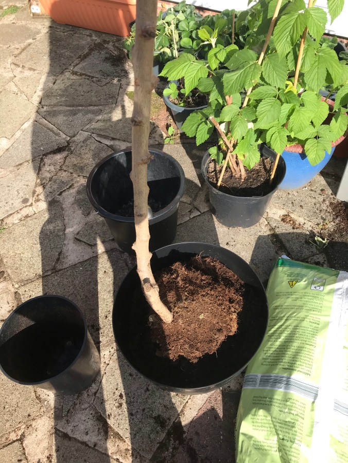 We have also got a few new trees and bushes. We got a peach, nectarine and an olive tree, that we need to find space for and I have only so far repotted one of them, but we need to get more pots for the other two. We also bought blackcurrant, redcurrant and white currant bushes. They were bought very cheaply and weren’t doing very well in their pots and weren’t retaining water. Having no where permanent to plant them at the moment, I bought a large pot that for now, they can all go in, until they get a bit healthier looking. We managed to salvage the gooseberries that were on deaths door, and are now massive, I’m sure we can do the same for these.