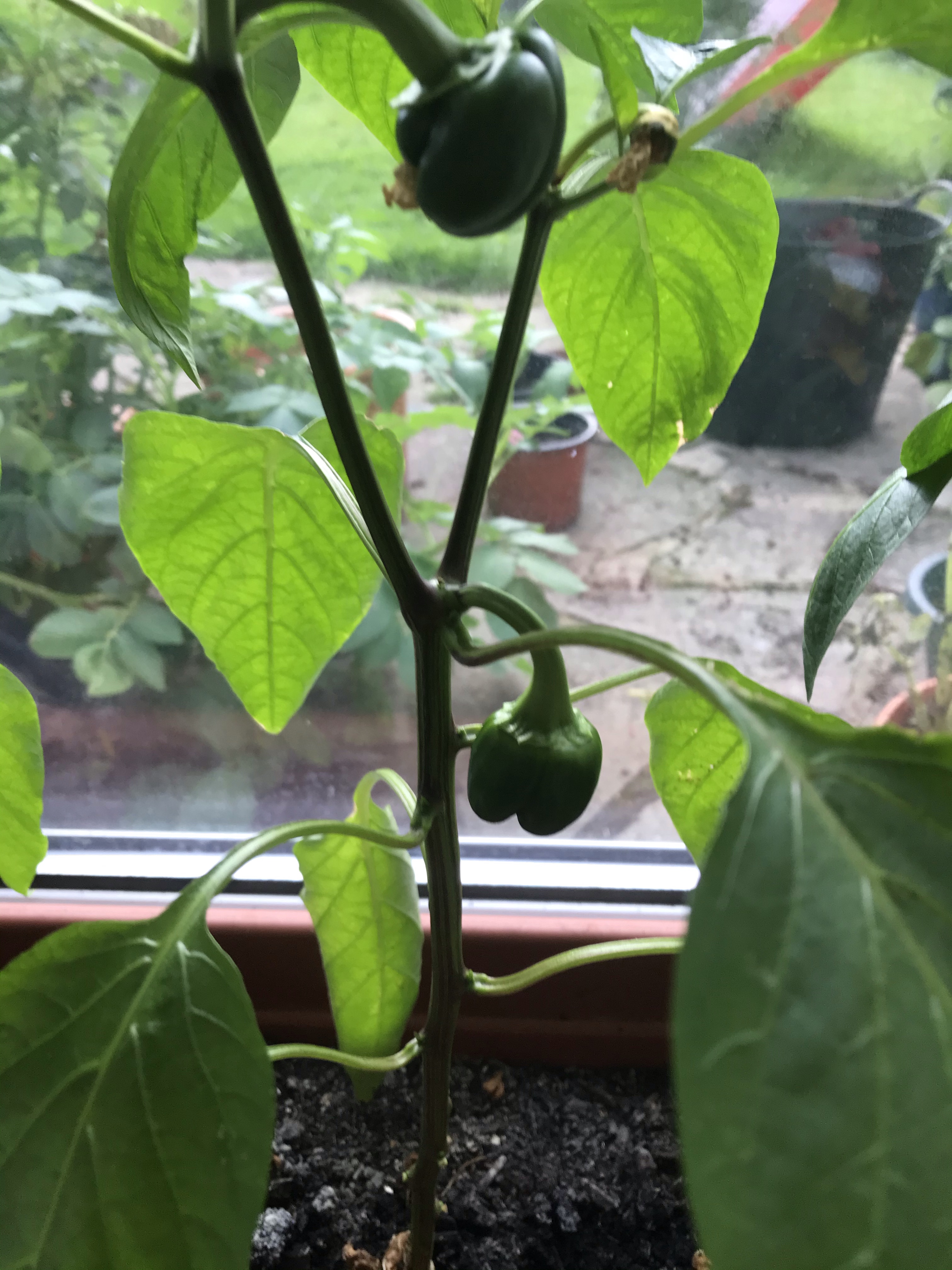 In other garden news, the out side peppers have suddenly gotten big and are just about to flower, and the indoor ones with peppers on them are growing nicely. We have a couple of pumpkins growing that are a pleasingly good size. Although some of the leaves are not looking in a good way, so thats another one to look into, could be some kind of plant fungus.