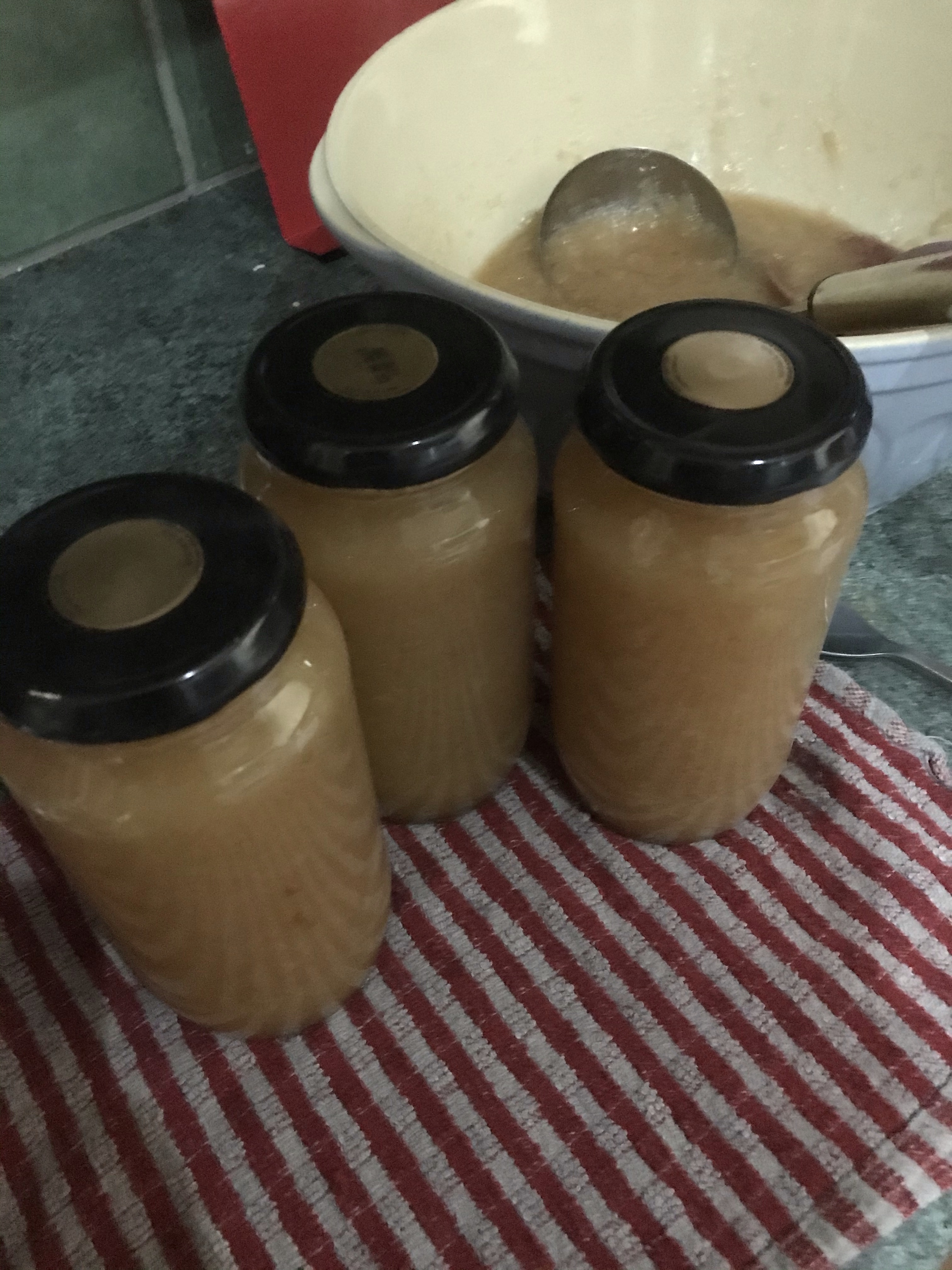 I used some of the apples to make fruit leather. Using the puréed apple spread on a baking tray, then put in the oven at 50-70c for 10 hours.