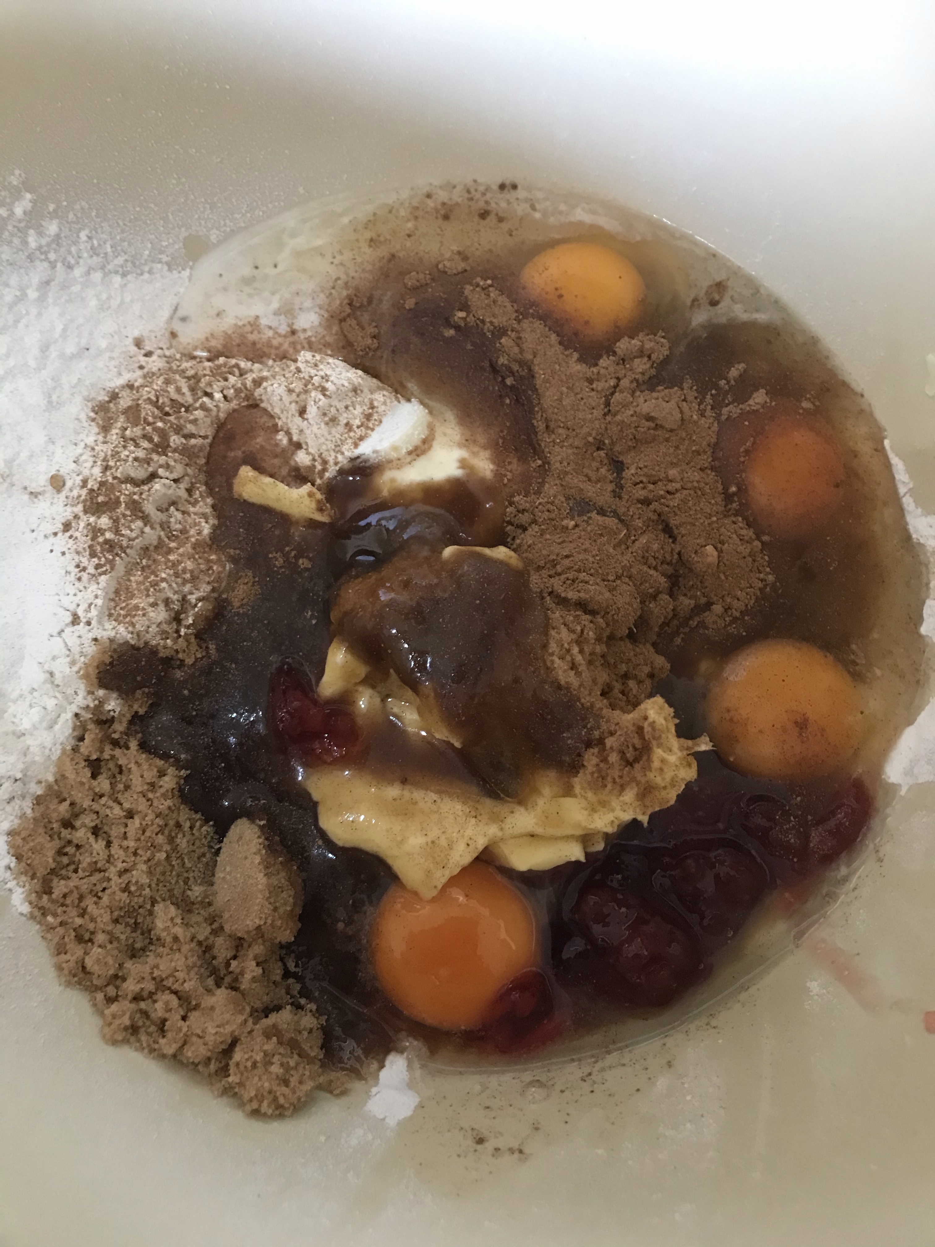 1- Pre-heat oven to 170c. I used a silicone loaf pan, but I would recommend a metal one. Grease or line with baking paper. Put the fruit aside for last.