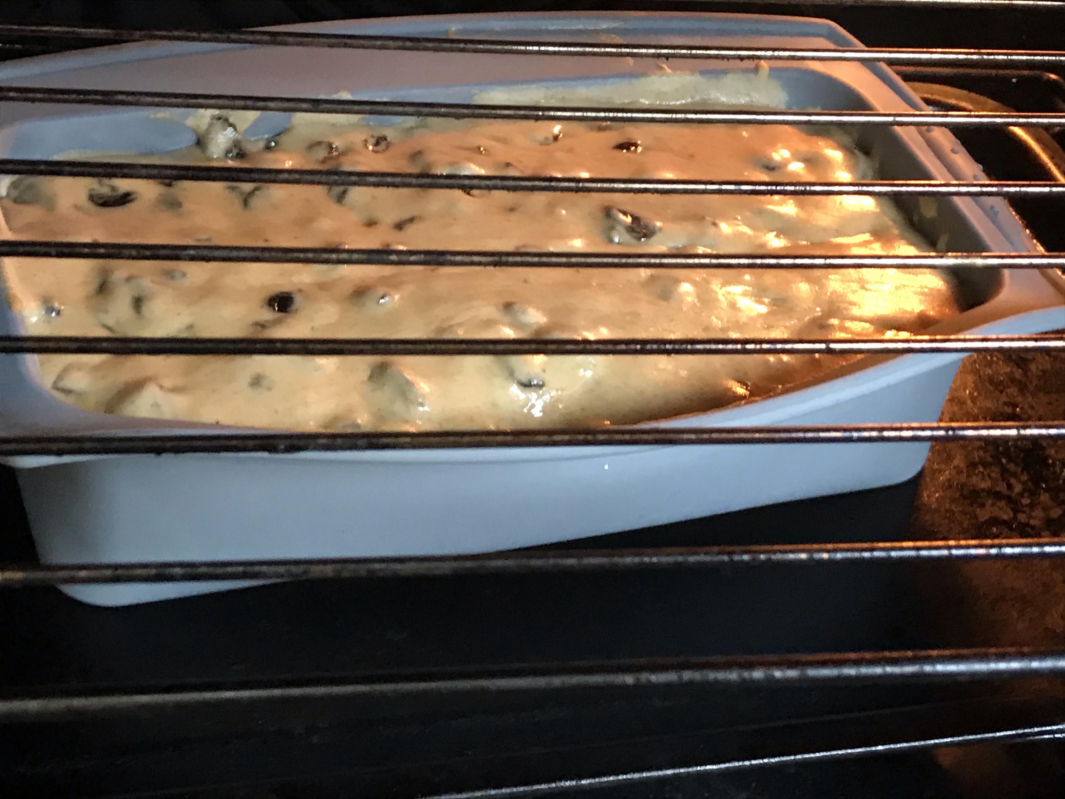 Unfortunately my silicone pan, has very little structure to it, and it came out not looking much in the shape of a loaf, as you can see 😂: