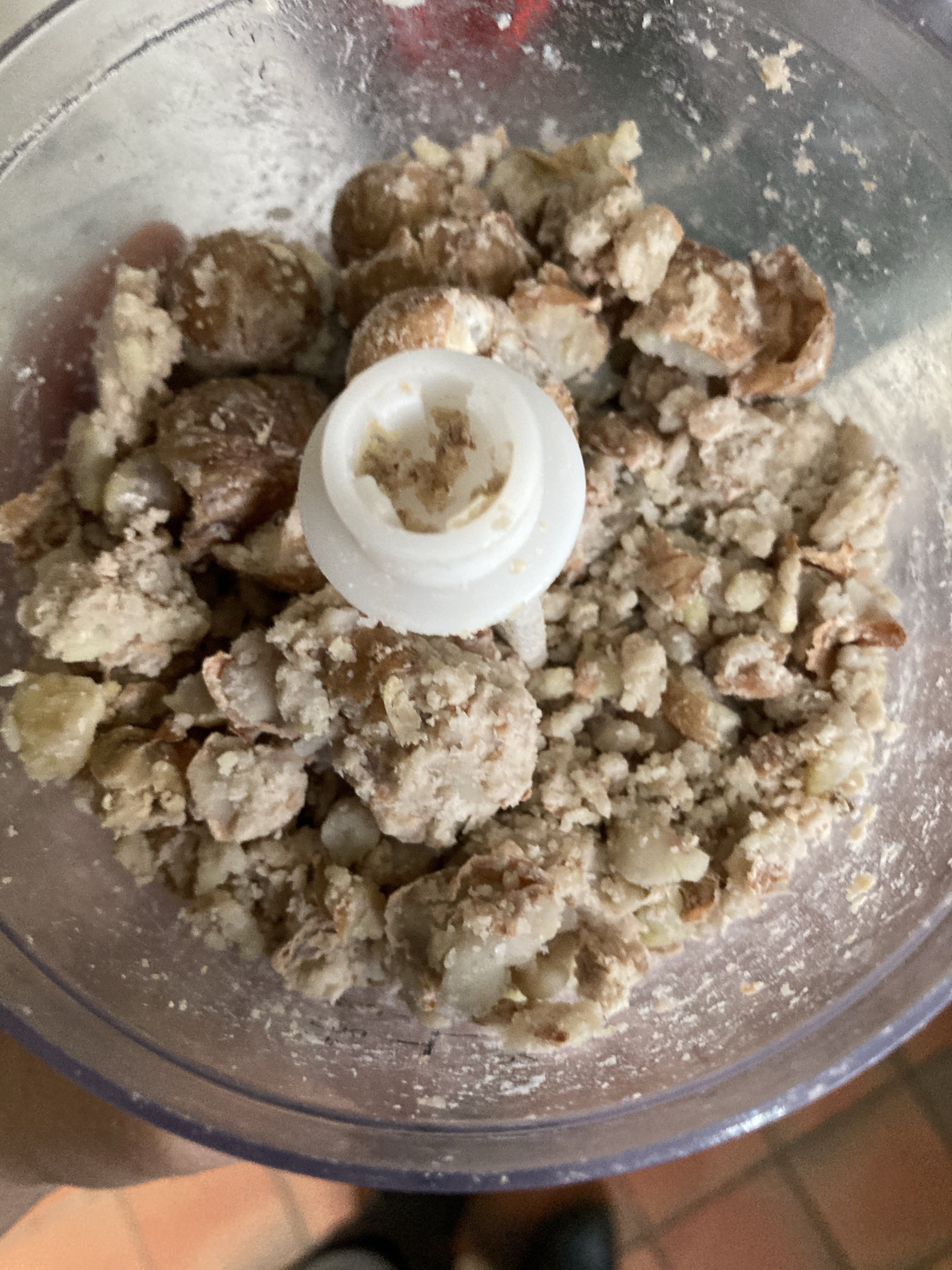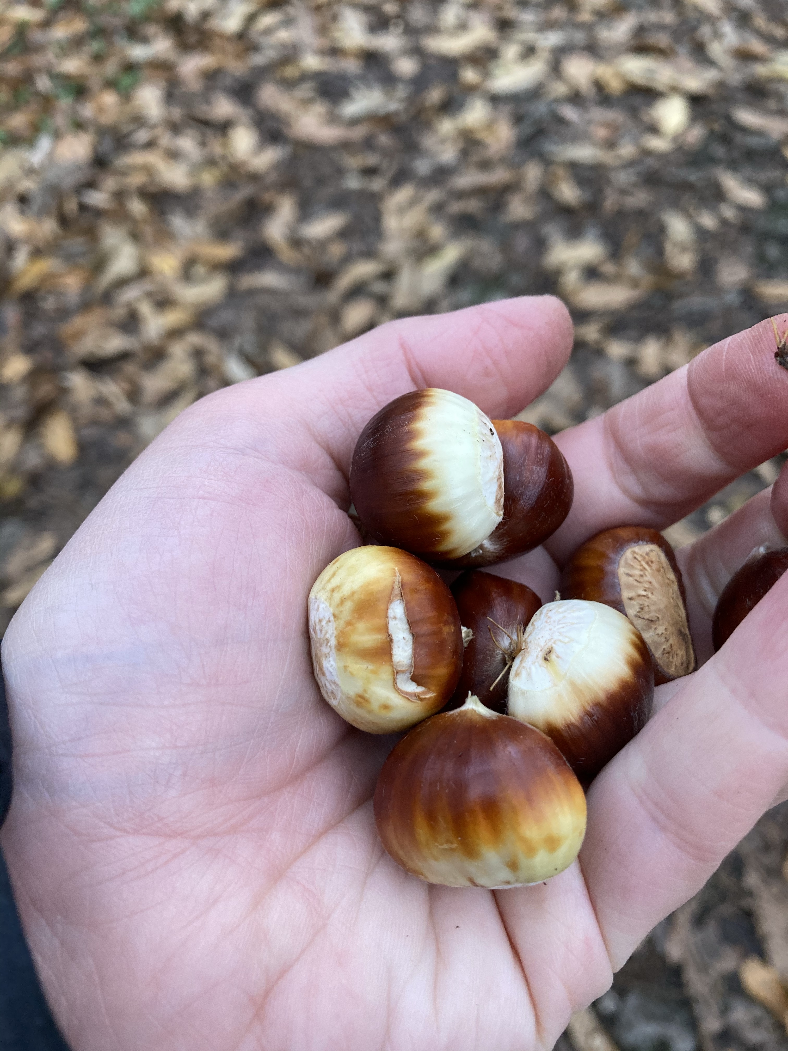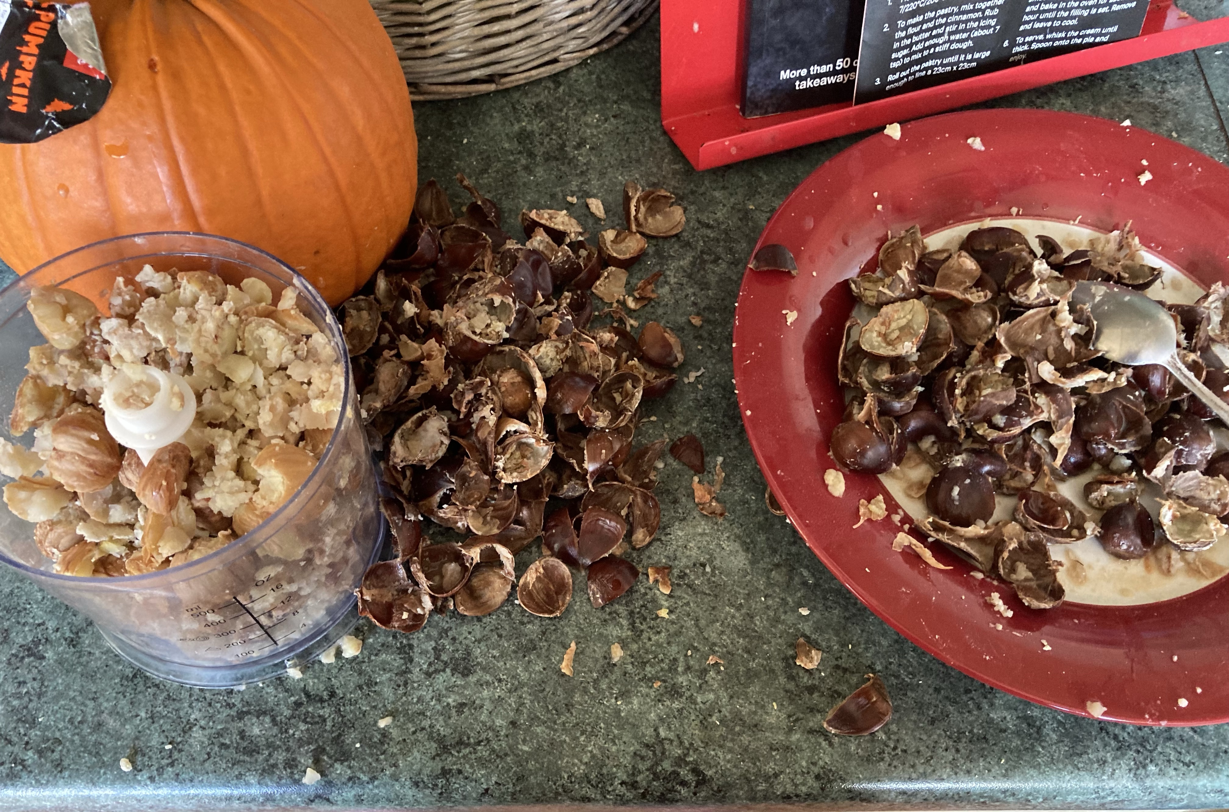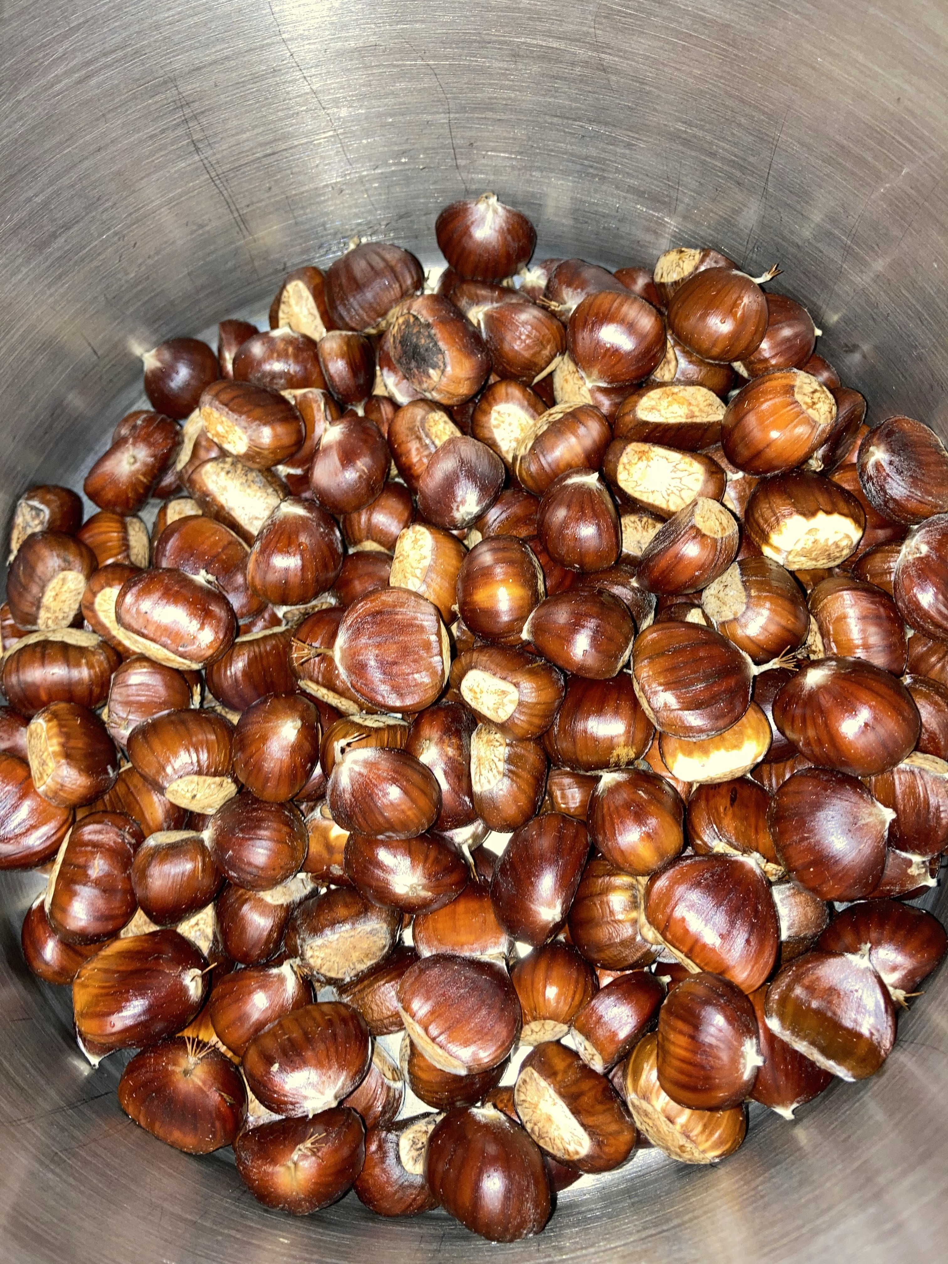 The chestnuts We will probably roast some, but I boiled half to make into Chestnut & Chocolate spread….. it was delicious but I’m telling you now, it wasn’t worth the effort! It is such hard work removing all the shells and attempting and failing to remove the skins. I used different methods of trying to blend to a ‘spreadable’ consistency, but in the end I had to use a hand blender. I added honey and melted chocolate and then it blended a bit easier. I managed to do what I set out to do, but it took me to long to bother trying to do it again.