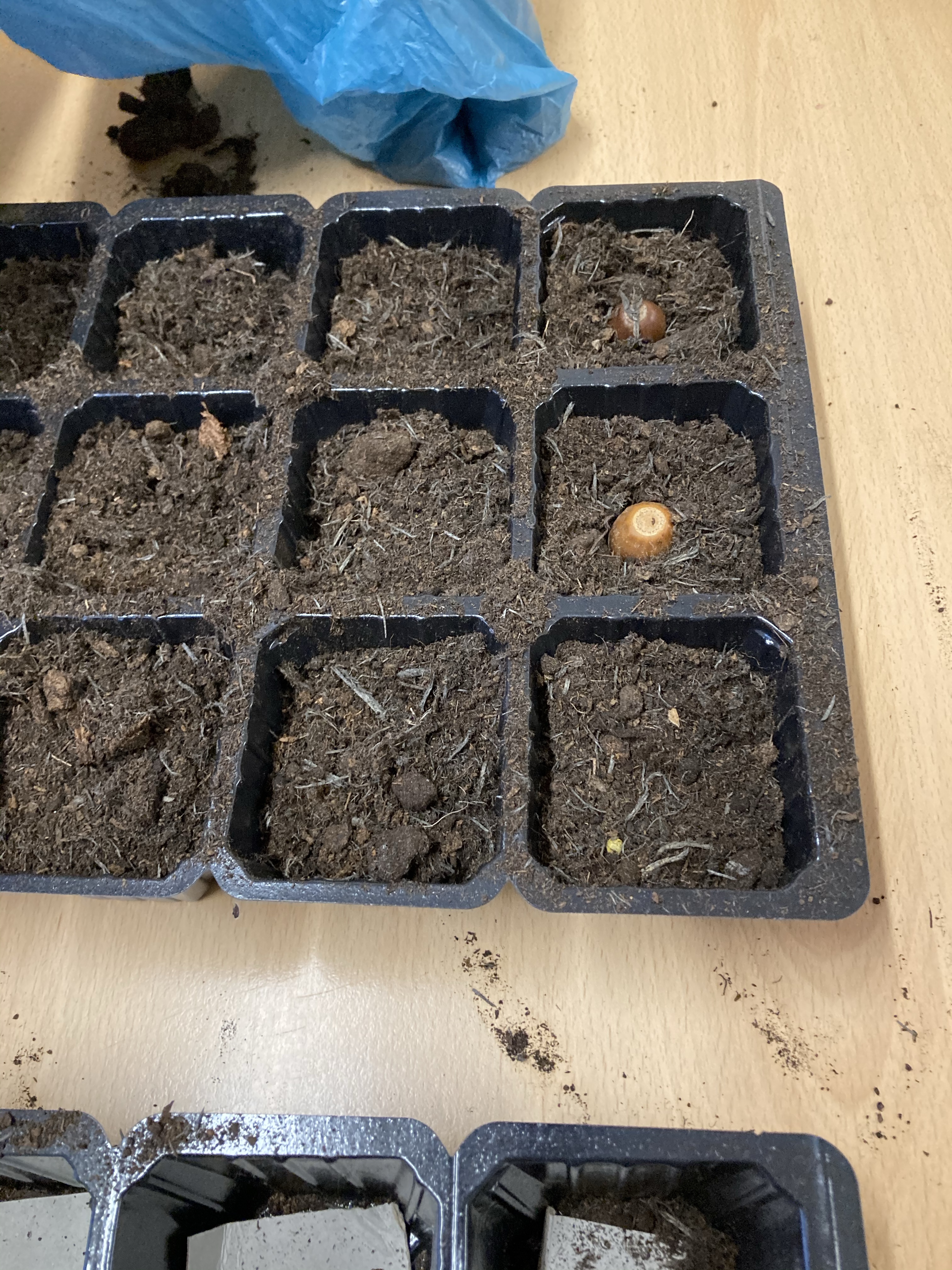 We found the acorns already sprouting, so Tony put them straight into trays.