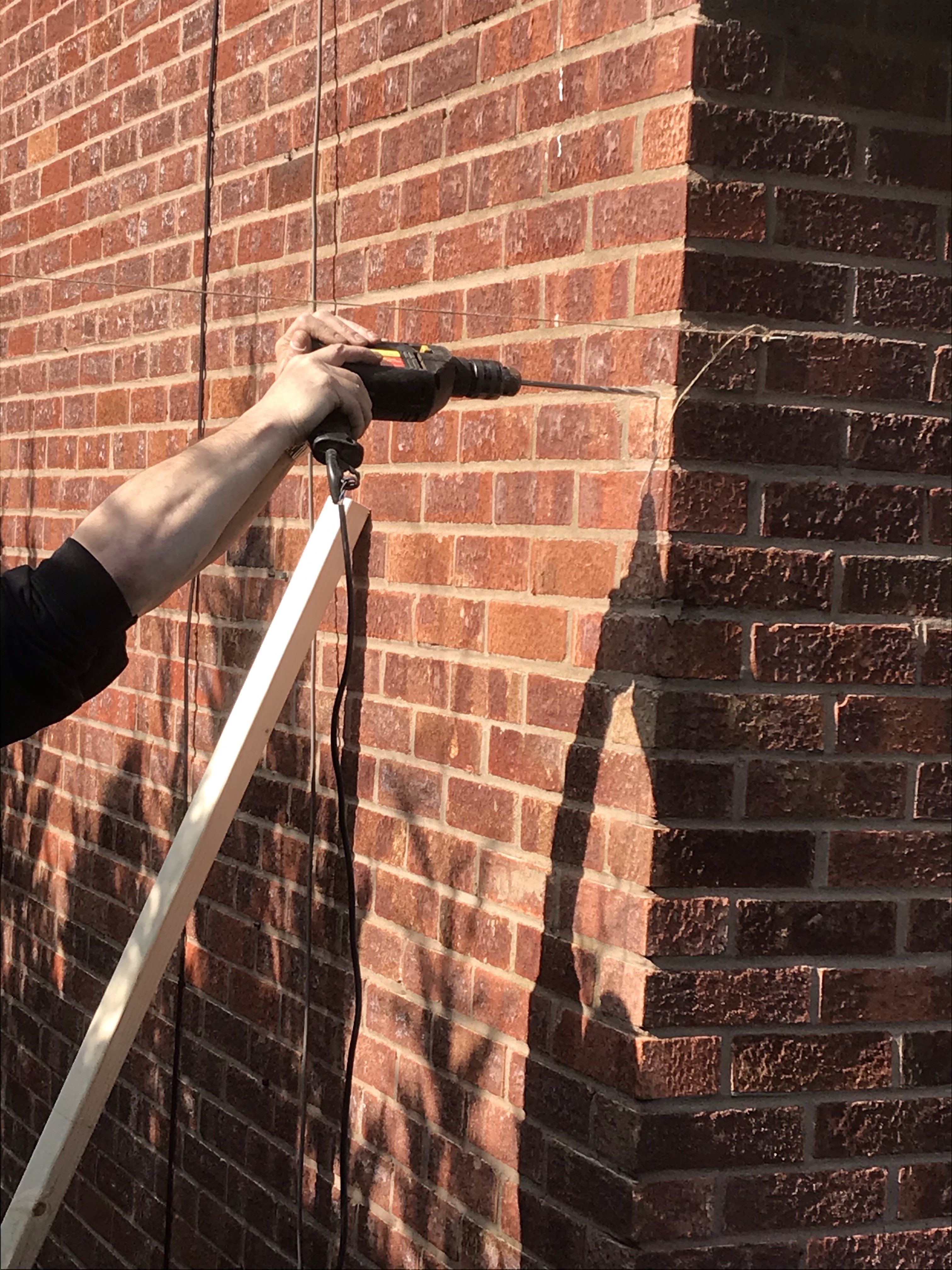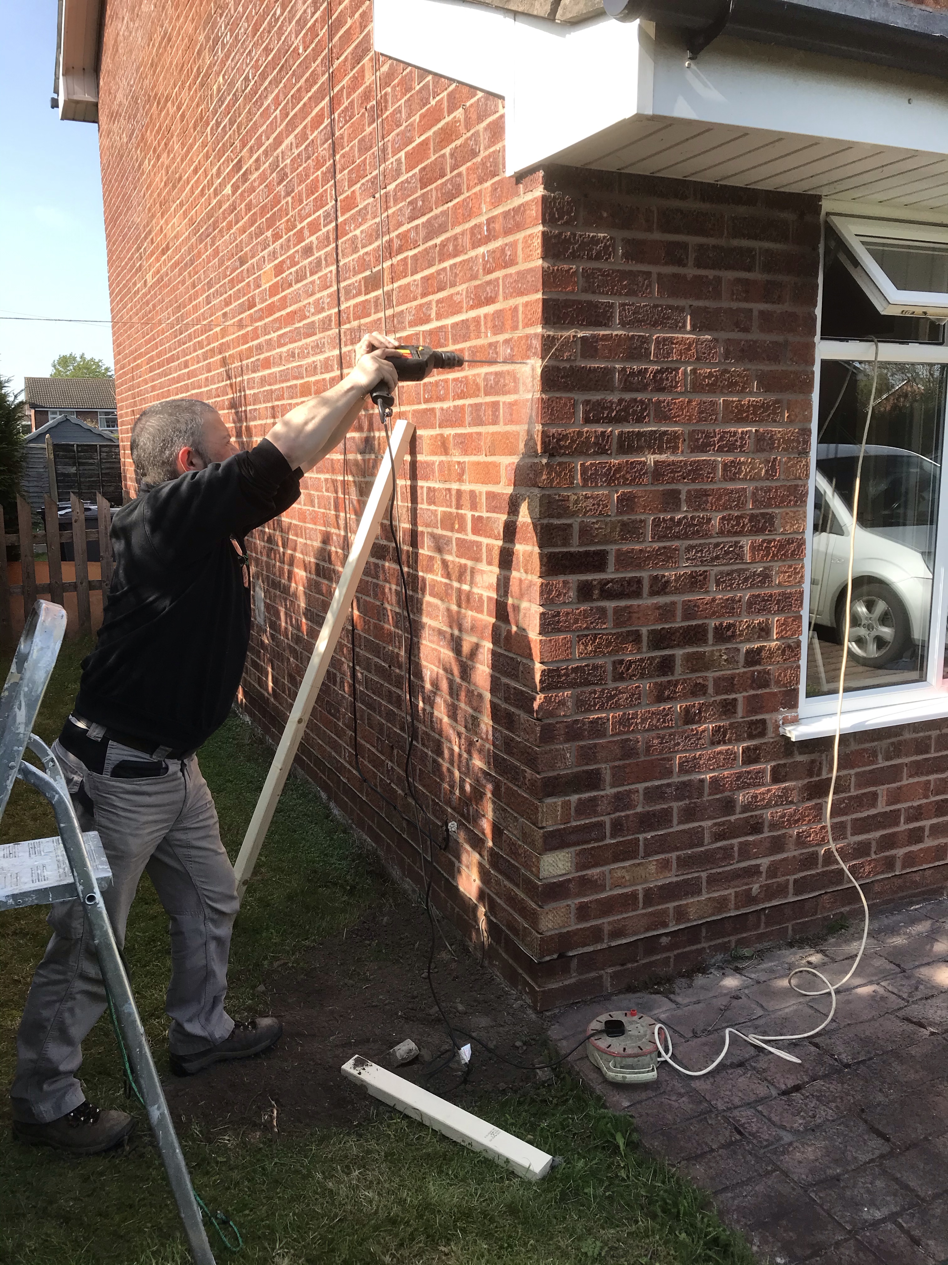 He secured the wood to the wall and prepared it ready for putting on the feather board.