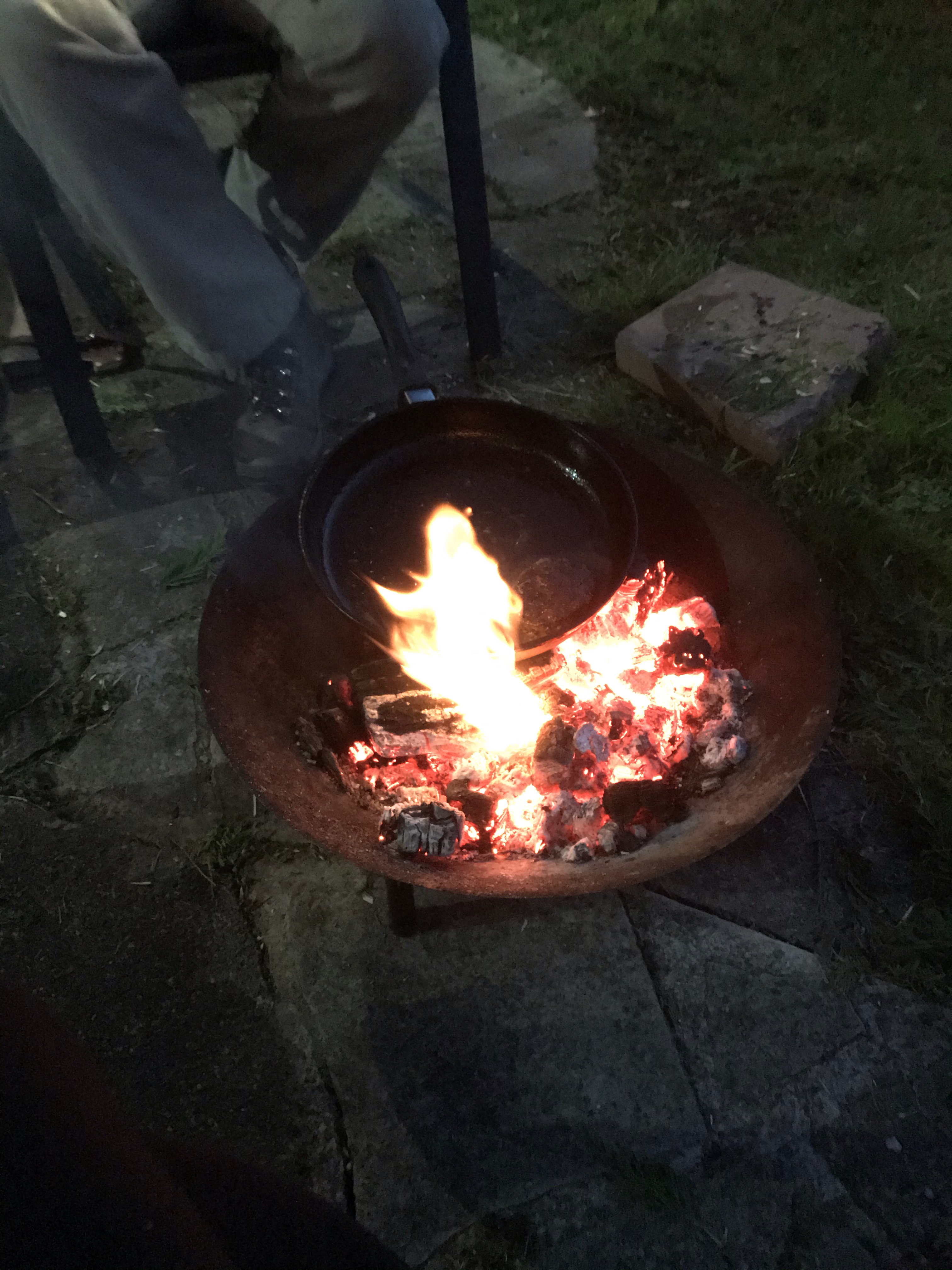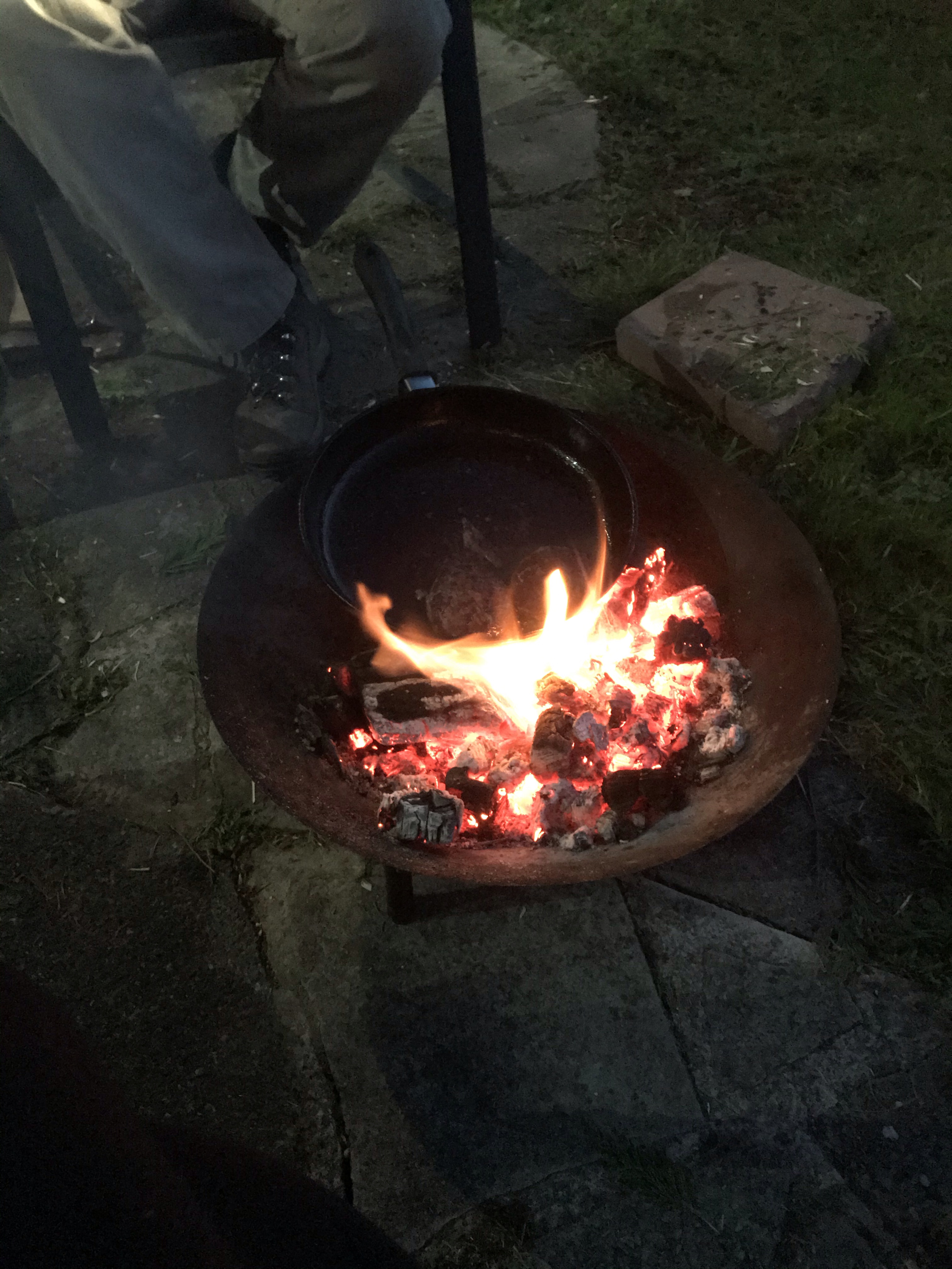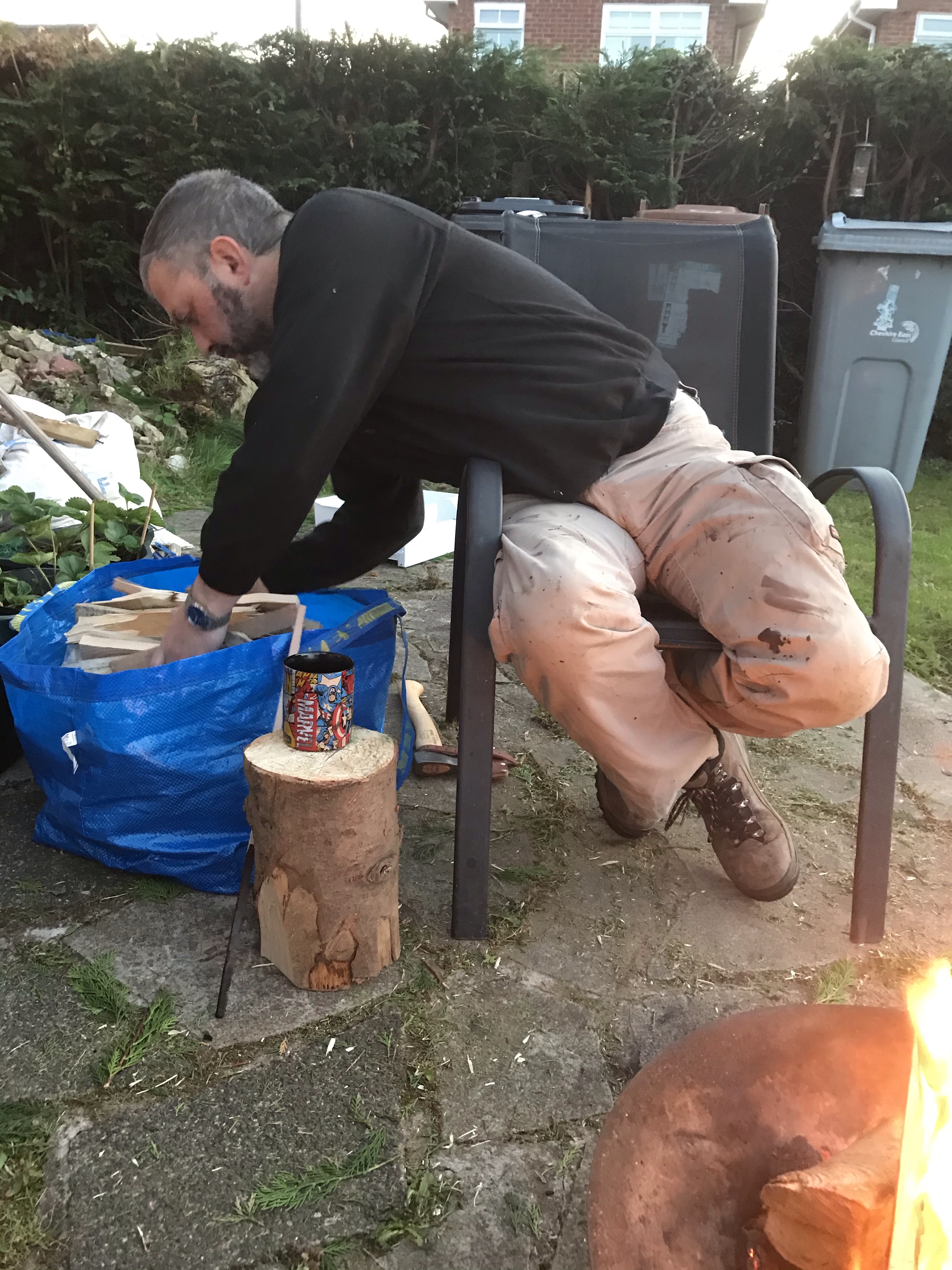 Once we finished painting the fence, Tony took out the small fence on the other side, so we could get to the space that the polytunnel would go. After all that , and feeling like we had accomplished something, we lit the firepit and relaxed round the fire.