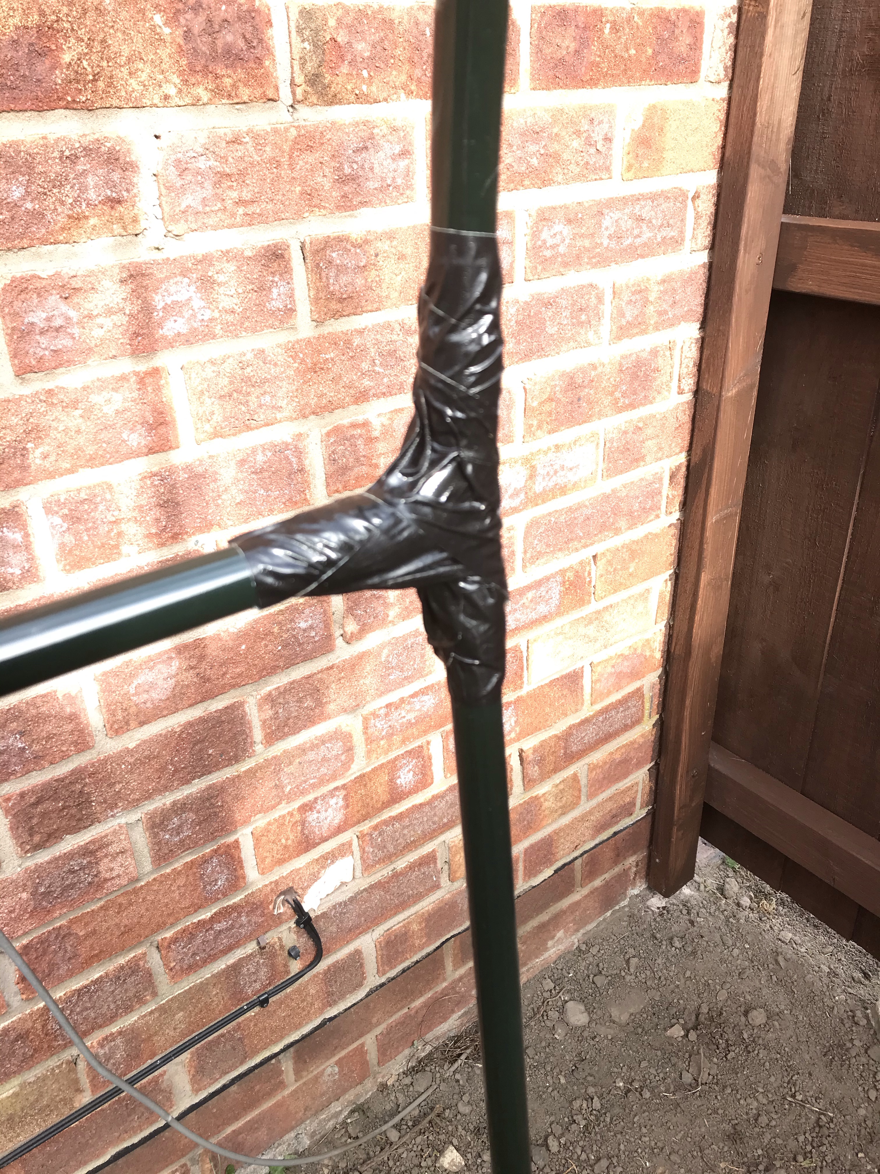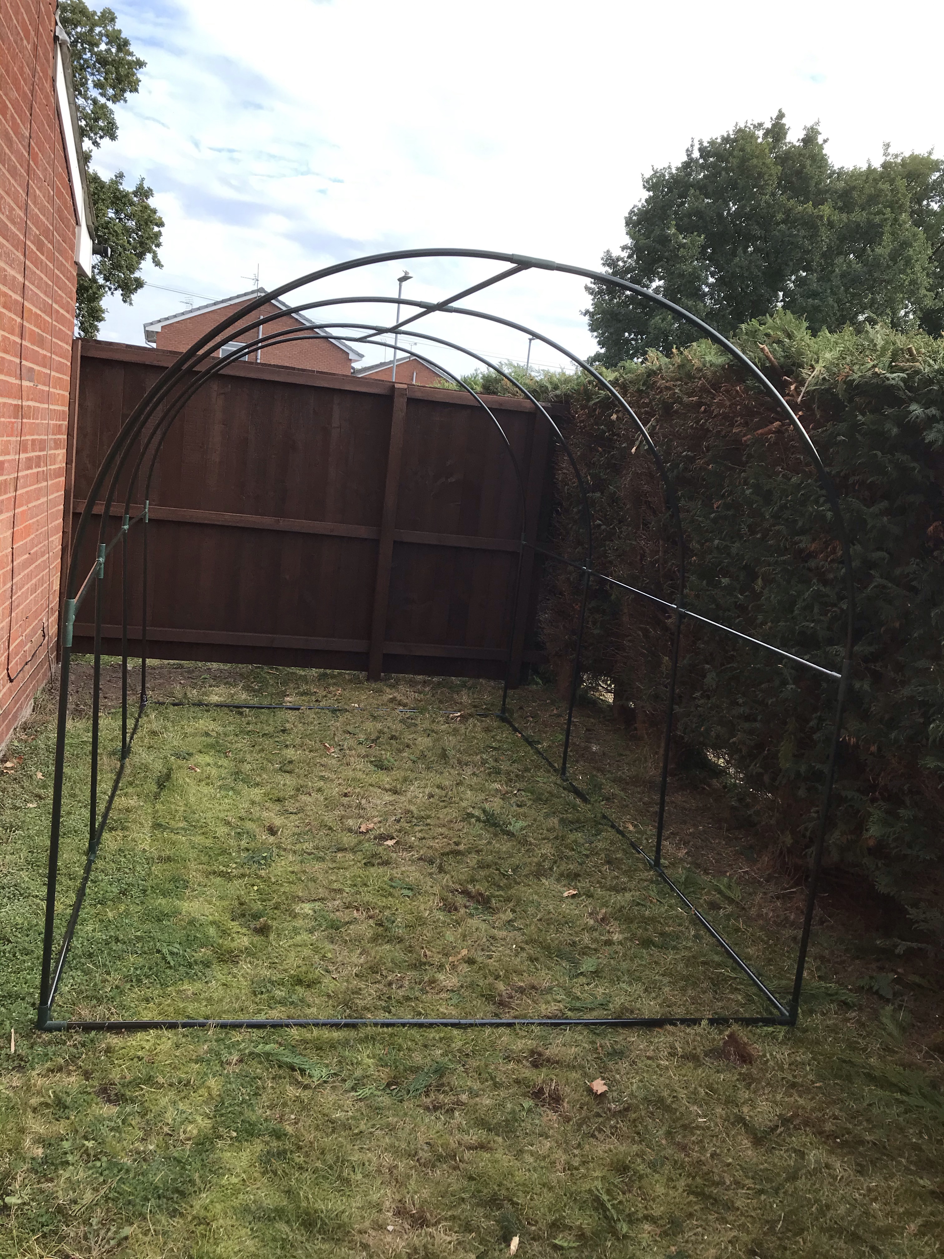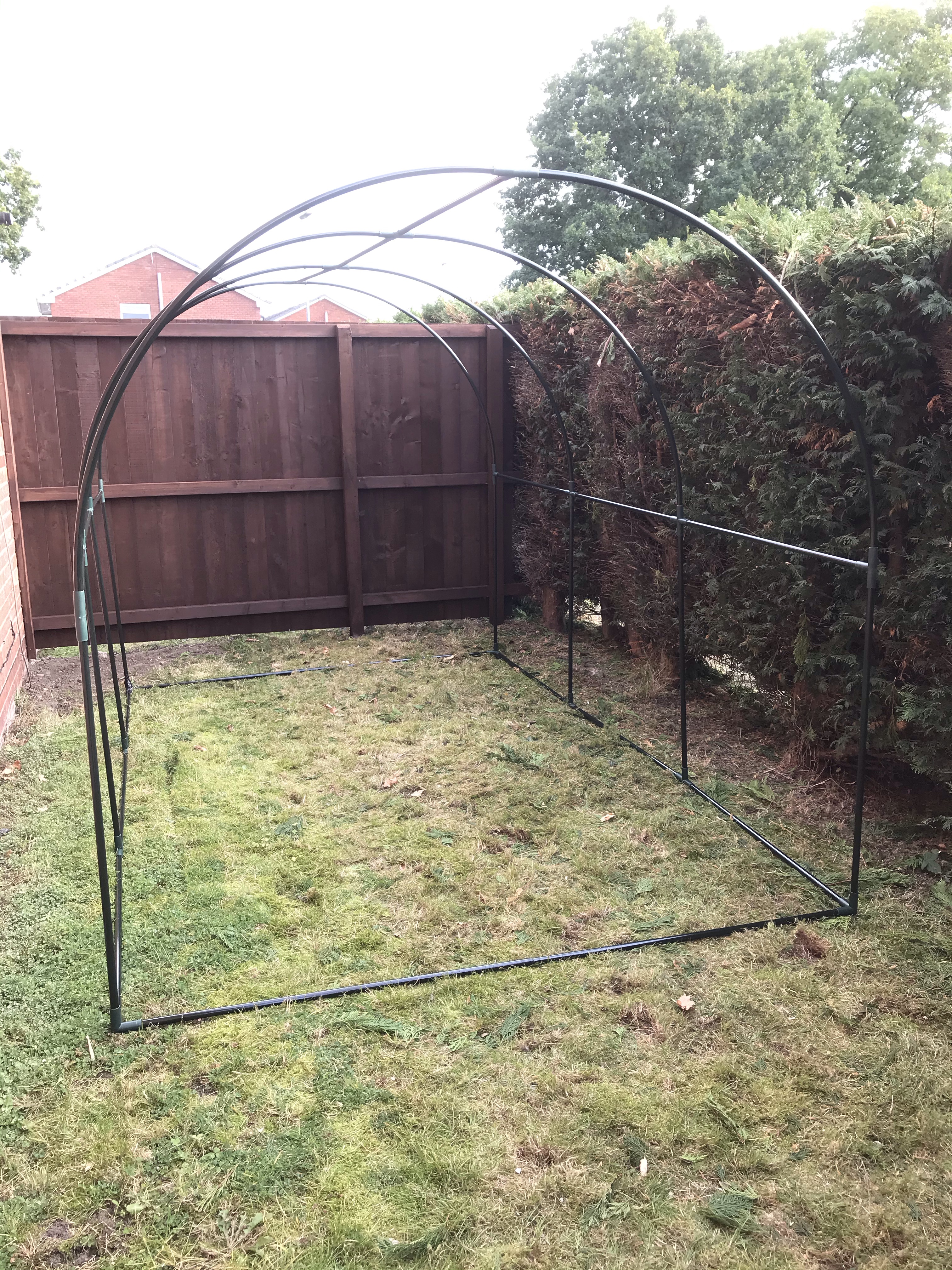 So now the fence was up, we could finally put the polytunnel greenhouse up. We have been wanting to do this since before lock down, and now we were ready. We opened the box and sorted all the pieces, only to find we were a corner piece missing!!! So off we went to The DIY shop, then B&Q and then Wicks, but the only thing close enough was a piece from the electric section. So we got that and a massive roll of duct tape and away we went putting up the new greenhouse.