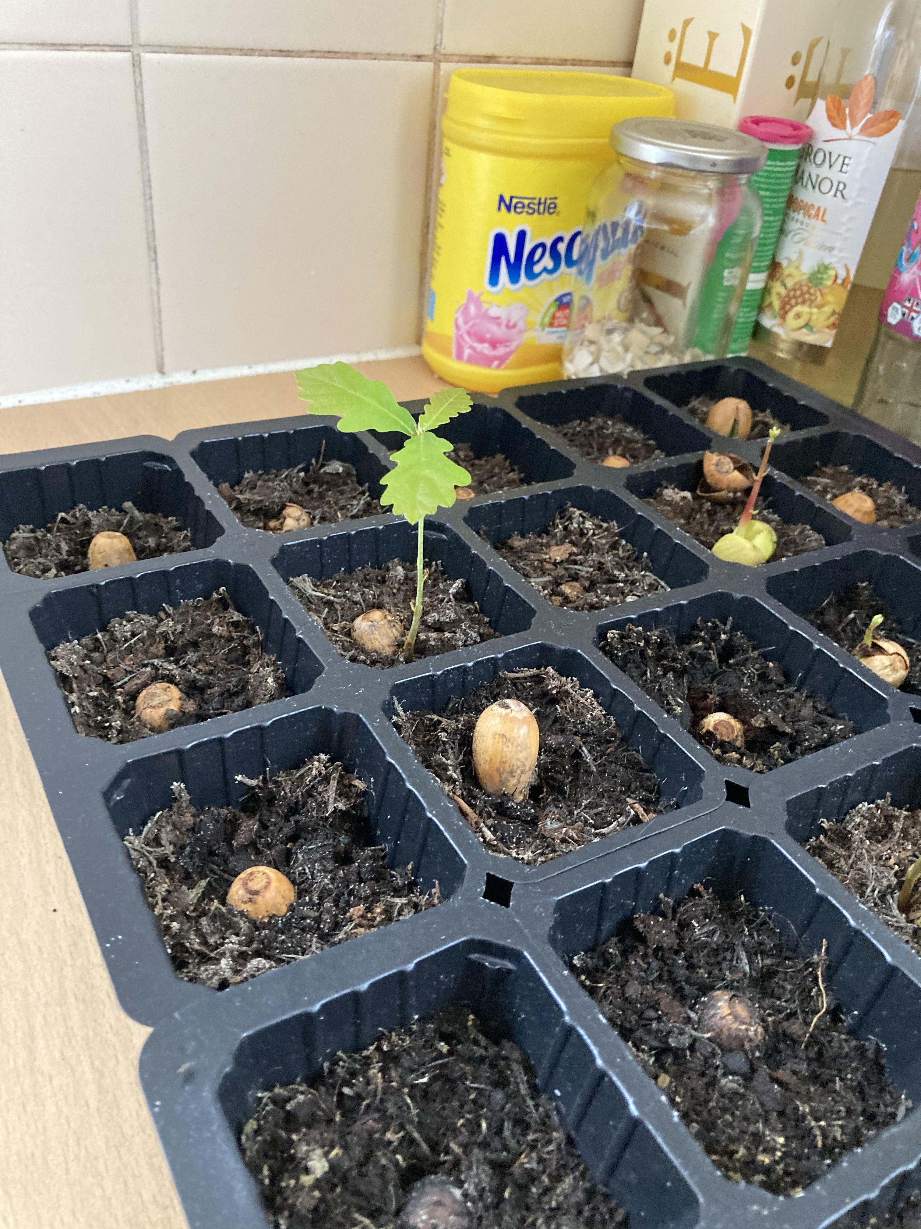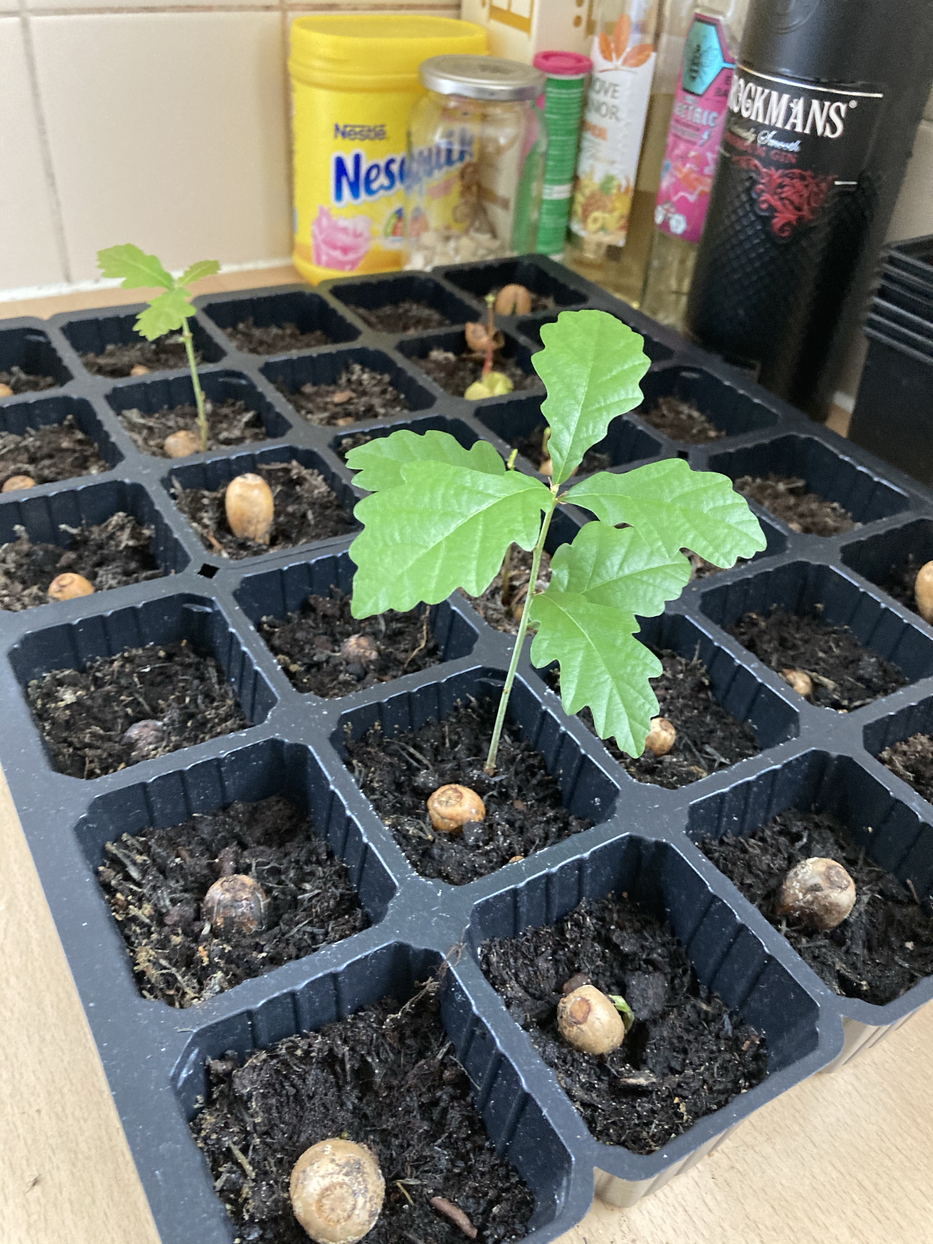 All I have to share for now are a few pictures of the little Oak saplings, which are doing amazing: