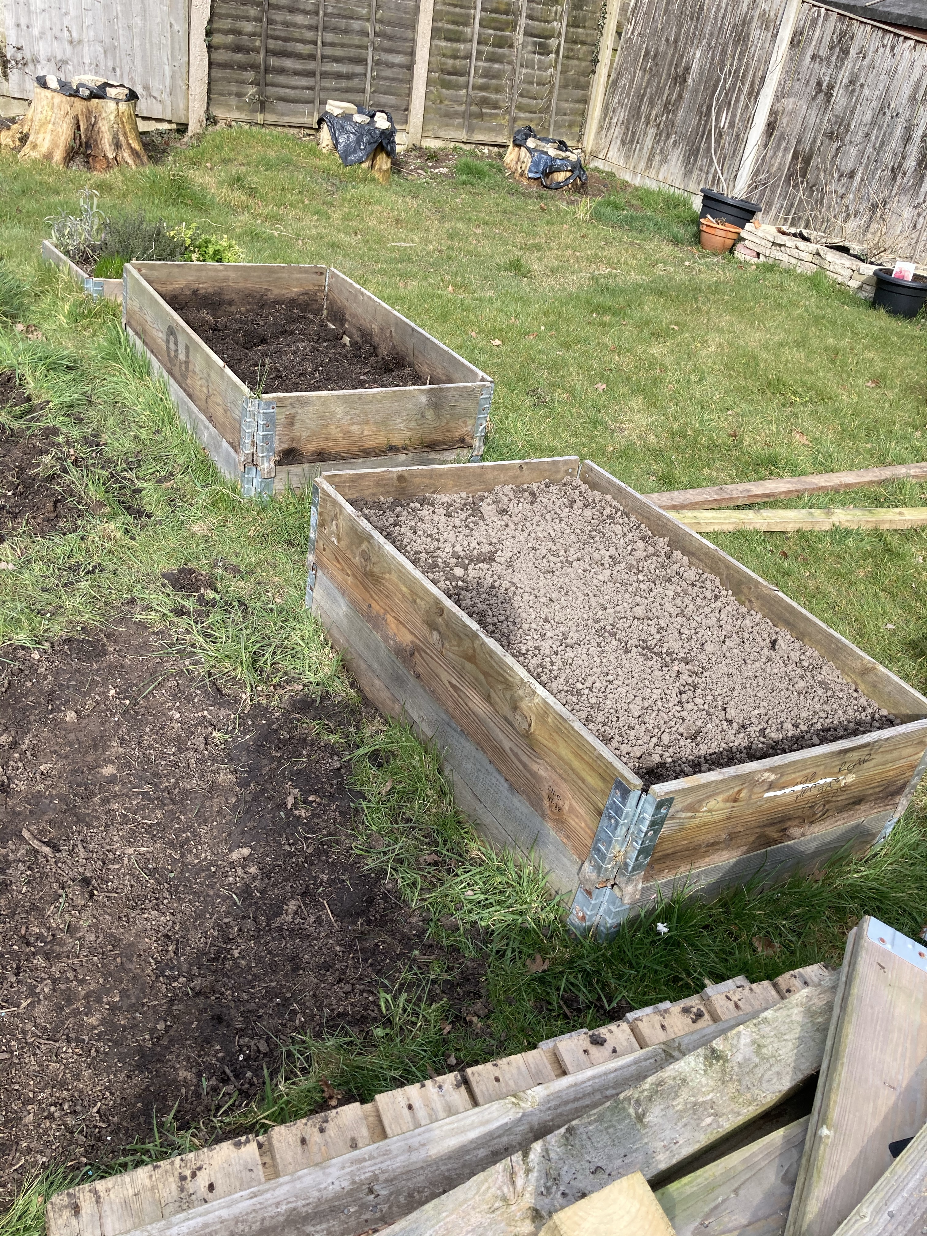 After last years experimentation on the potatoes, we decided to change the way we wanted to grow them. Instead of growing in bags (which didn’t yield a big crop just a couple of meals) we want to try for a bigger crop. Having built two large raised beds we have used the first for our potatoes. We are doing it in three stages, a first early pick, a second early pick and a main crop. The first early pick was planted at the beginning of March and already we have growth. The second early pick was planted at the end of March. our main crop will be planted towards the end of April. We will see how we get on.