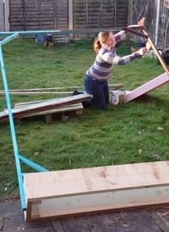 Over the large raised beds we made a netting cage, after being decimated by caterpillars last year. These were made cheaply with batons and hoola hoops then covered with a net, stapled into place.