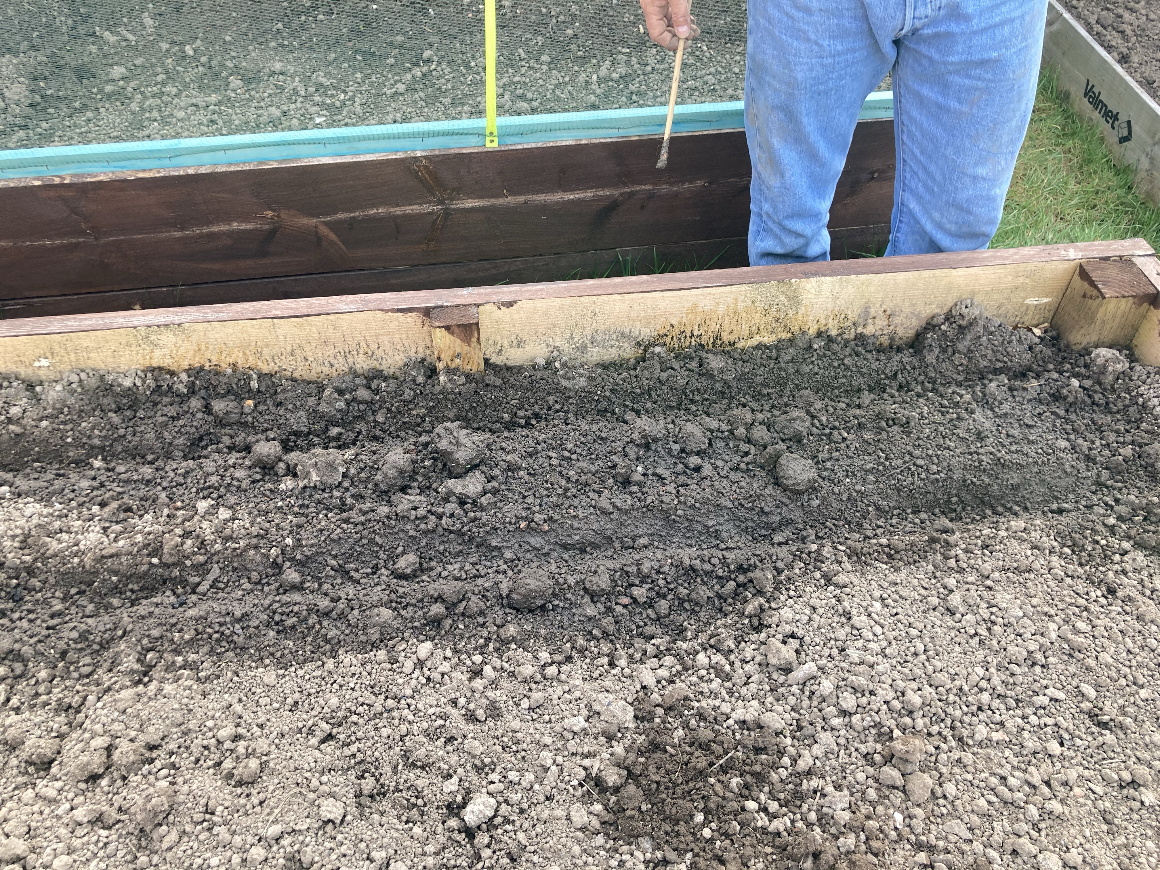 As we used the first large raised bed for the potatoes, we decided to mix it up a bit for the 2nd raised bed. We sowed carrots, beetroot, sprouts and cauliflower. The Broccoli will be planted later in the month in raised bed 3, and we put some different carrots(The Scarlet Horn from last year, because they were so nice) in raised bed number 2. The sweetcorn is being started off in pots indoors, to be planted out later in the season. Tony drew a quick sketch of everything we have and will plant and which bed they have gone/will go into.
