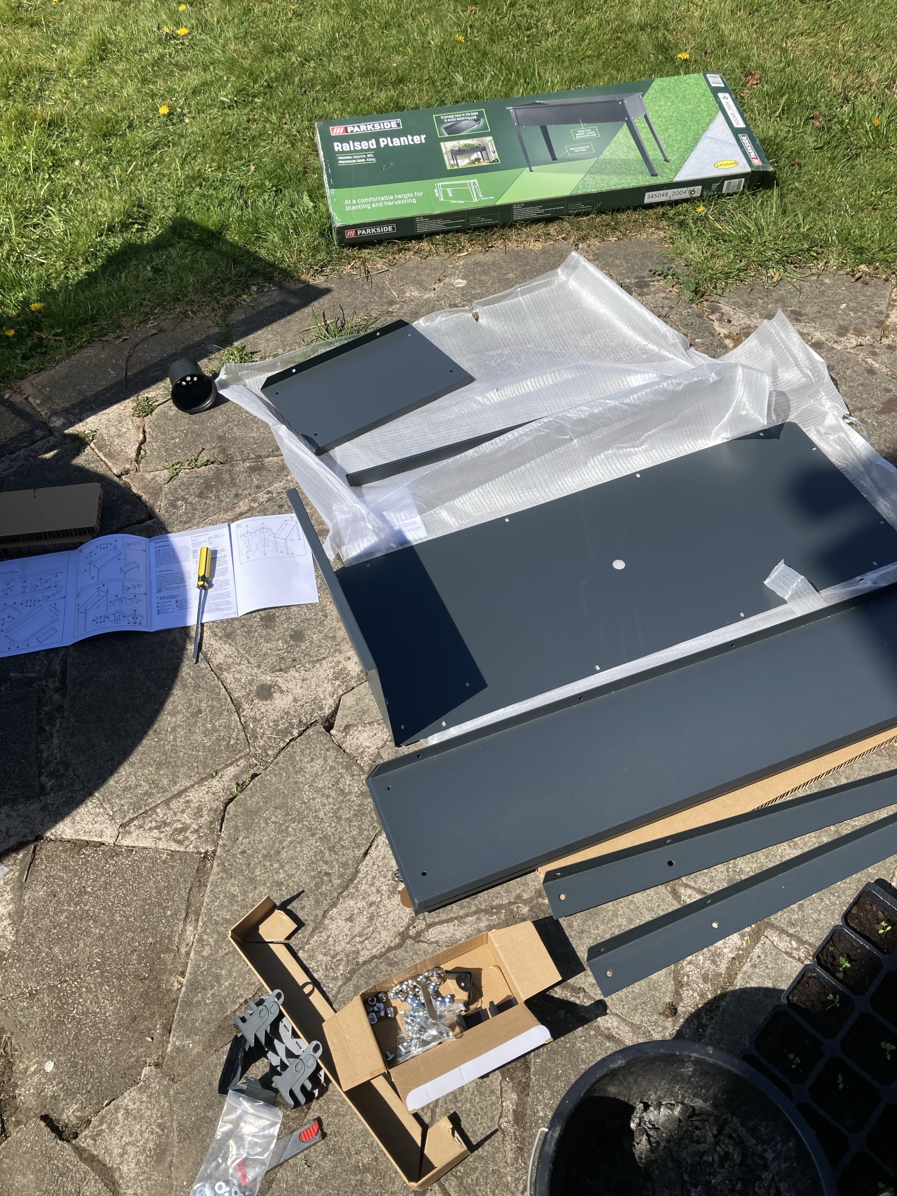 After a recent trip to Lidl I found a planter among the middle aisles of random junk (not gonna lie, I love looking at what random stuff they have in), but it was a bargain compared to the prices I had seen on line. So today I put it together and filled it with a few bags of compost, and planted a mix of different salad leaves, Cos, lambs lettuce and spinach.