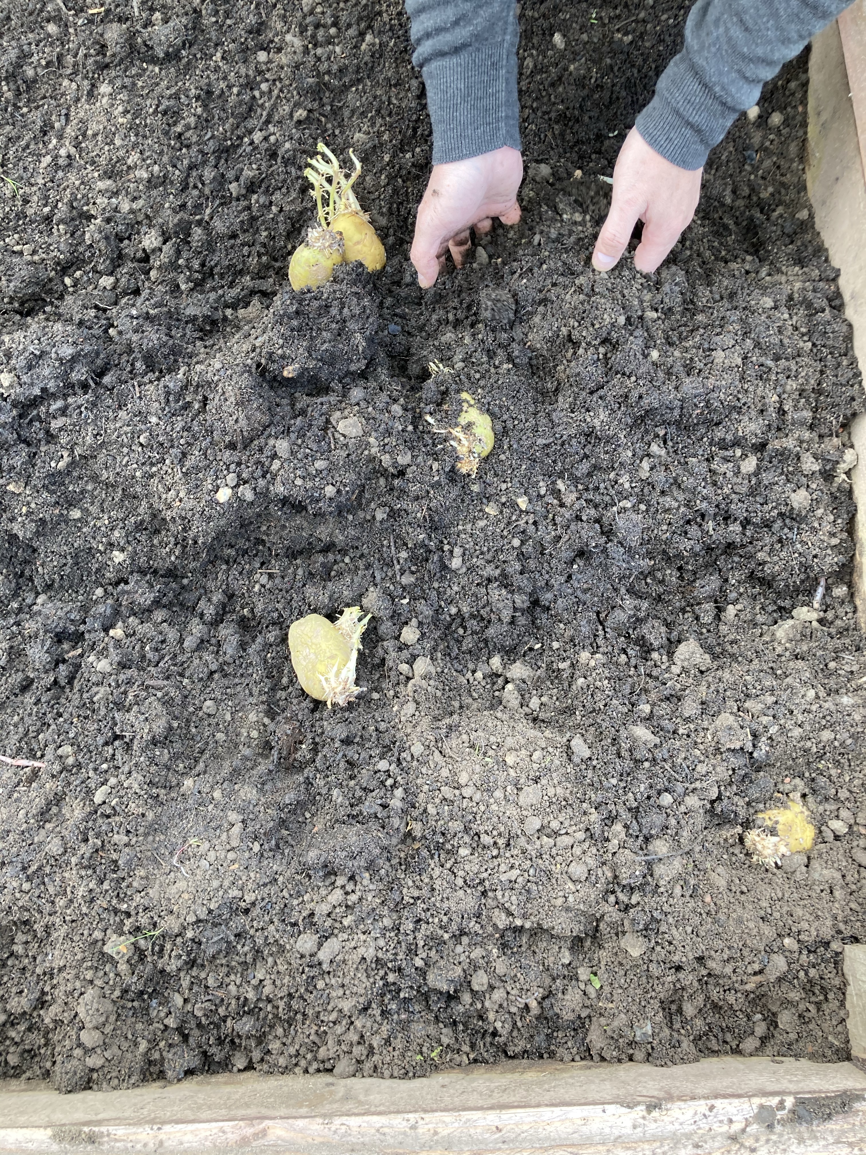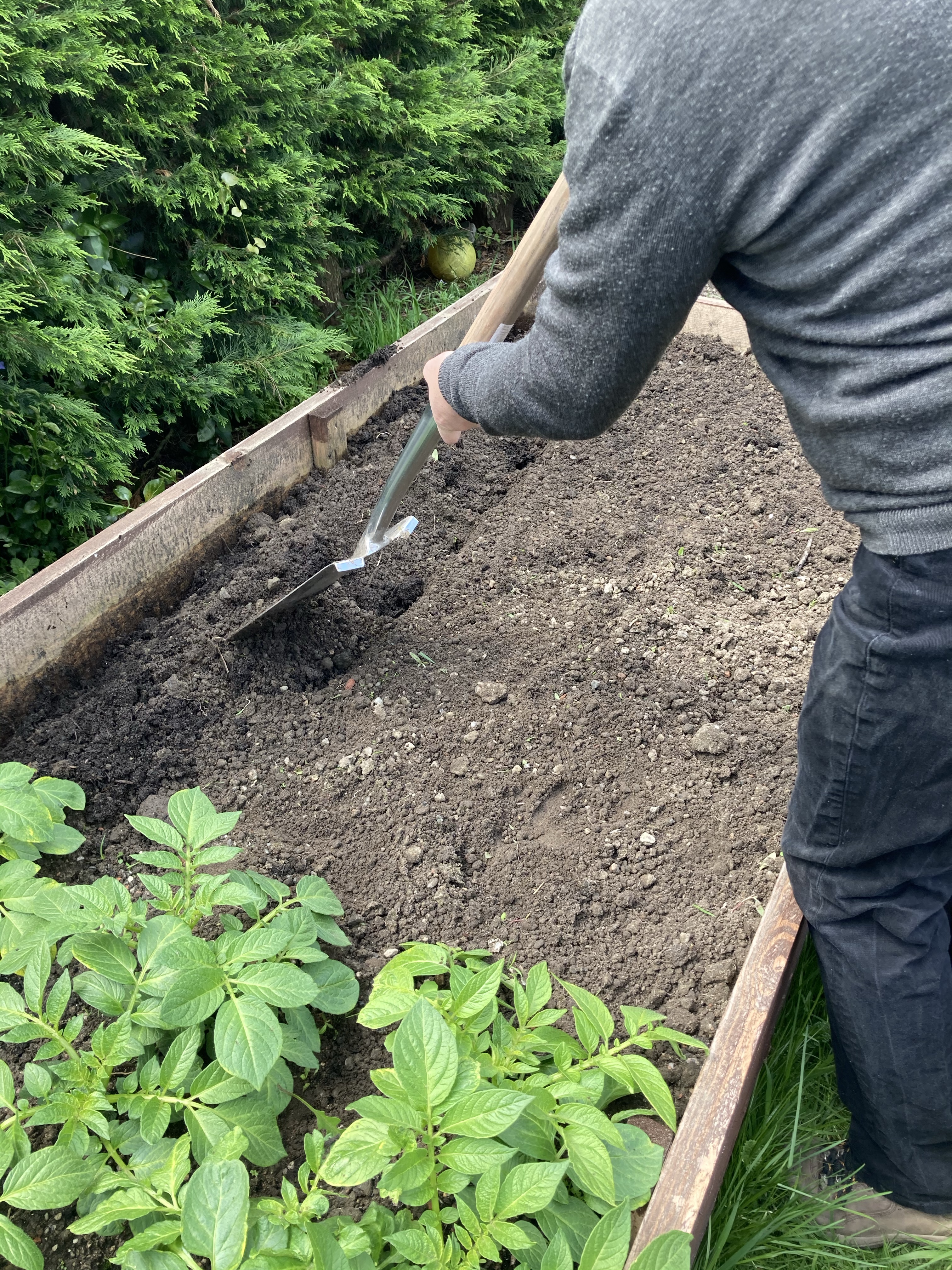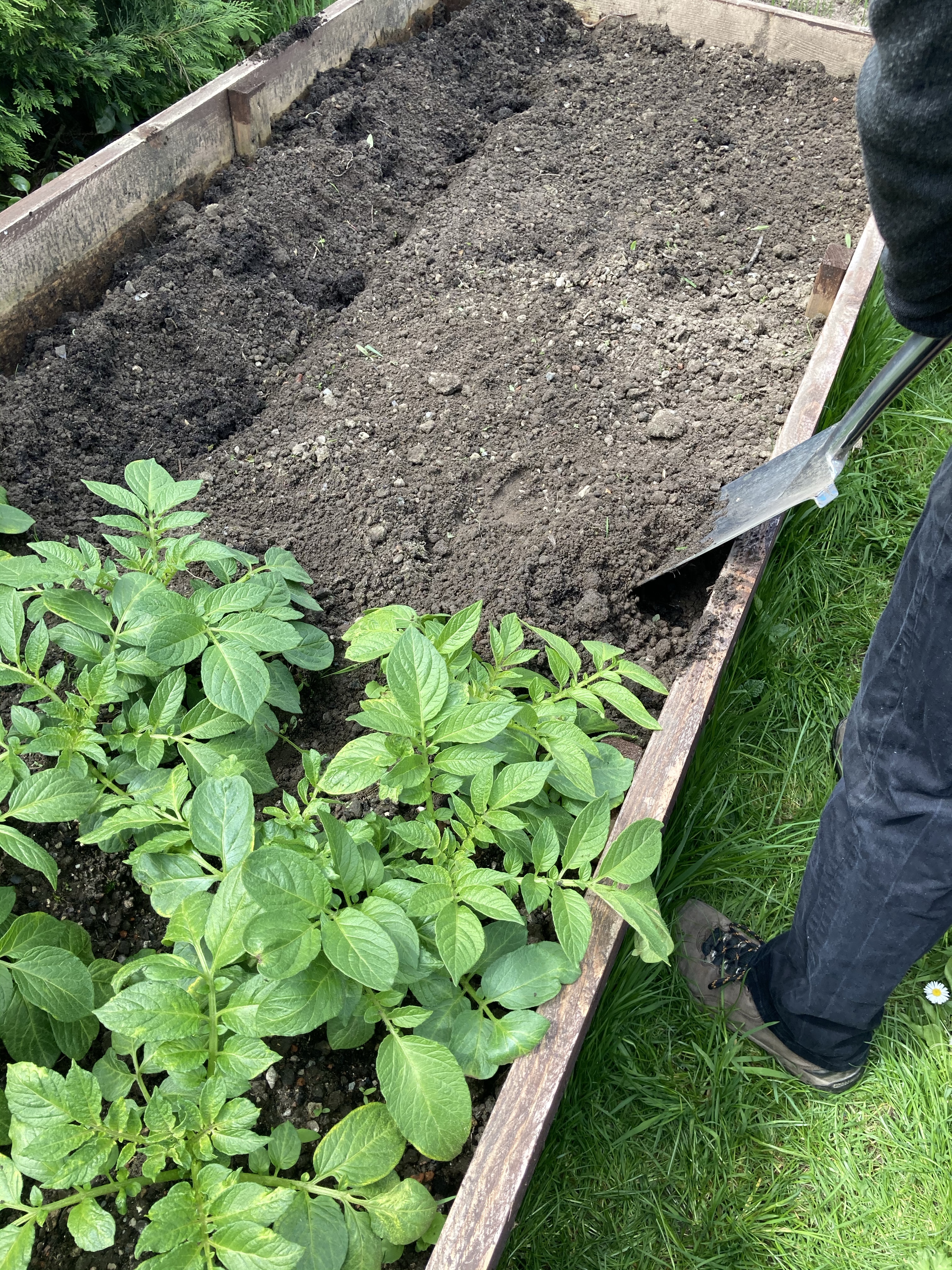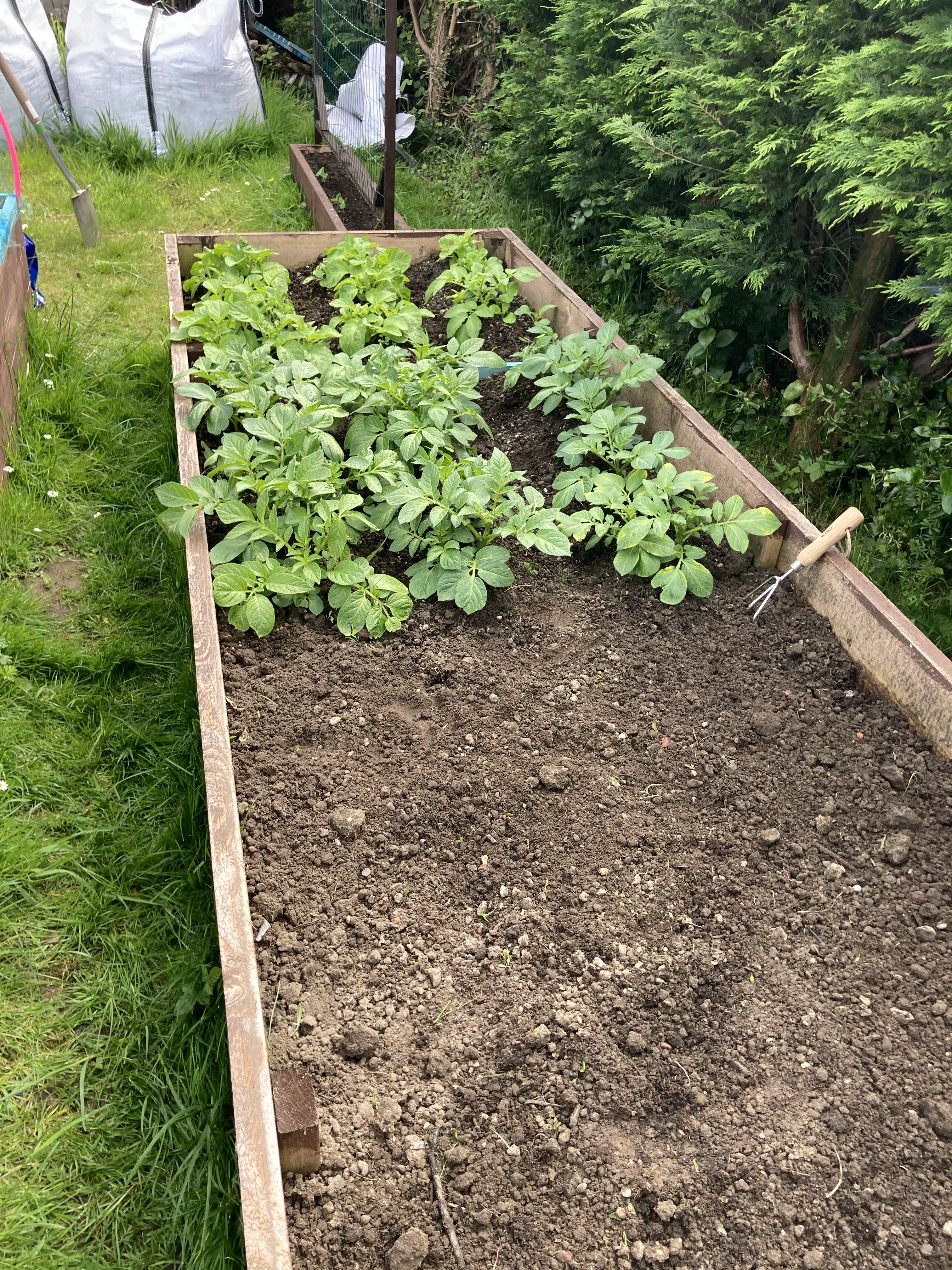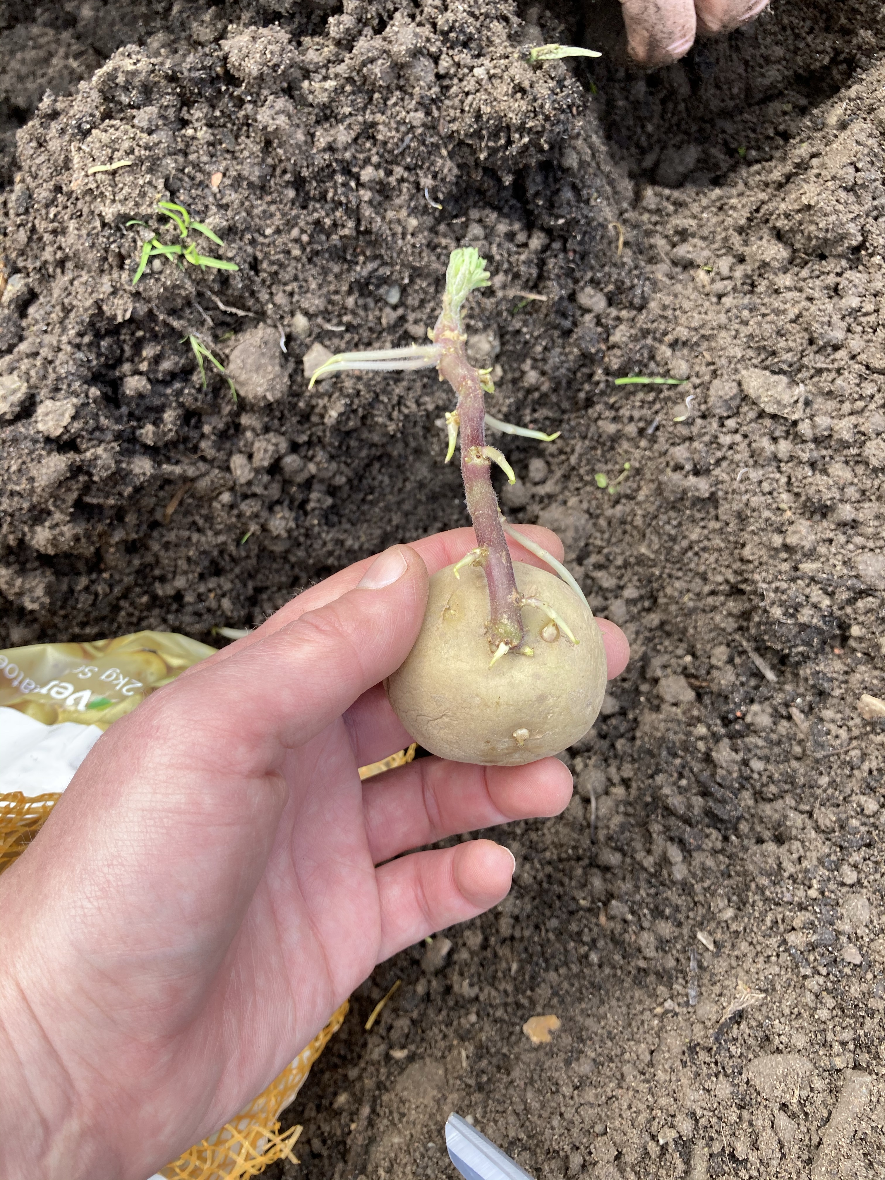 We started off by weeding the potato bed and planting the last of the seed potatoes. We used some Maris pipers that we had started off ourselves and also some Maris Peer seed potatoes that we had left over from the last lot we planted.