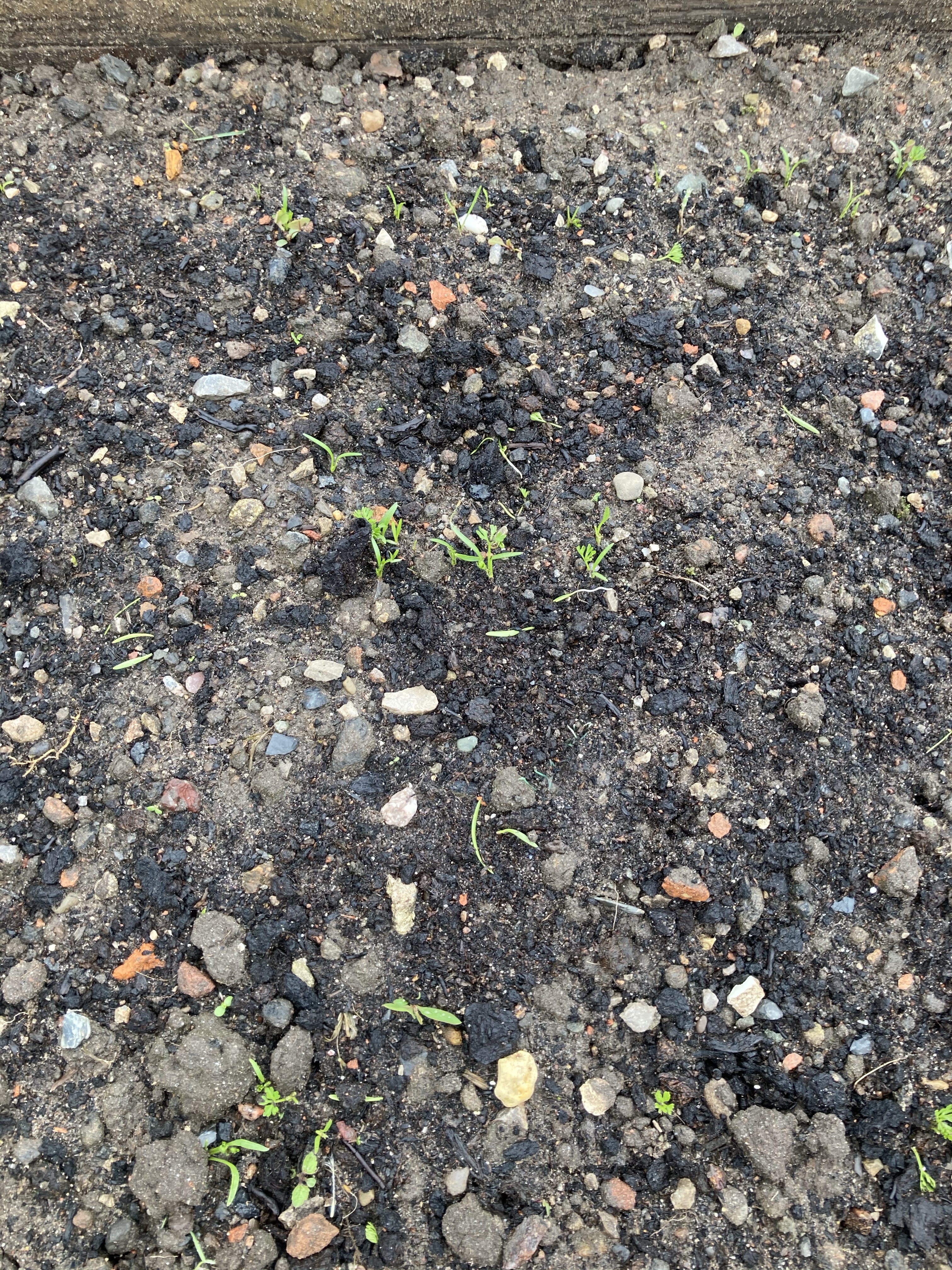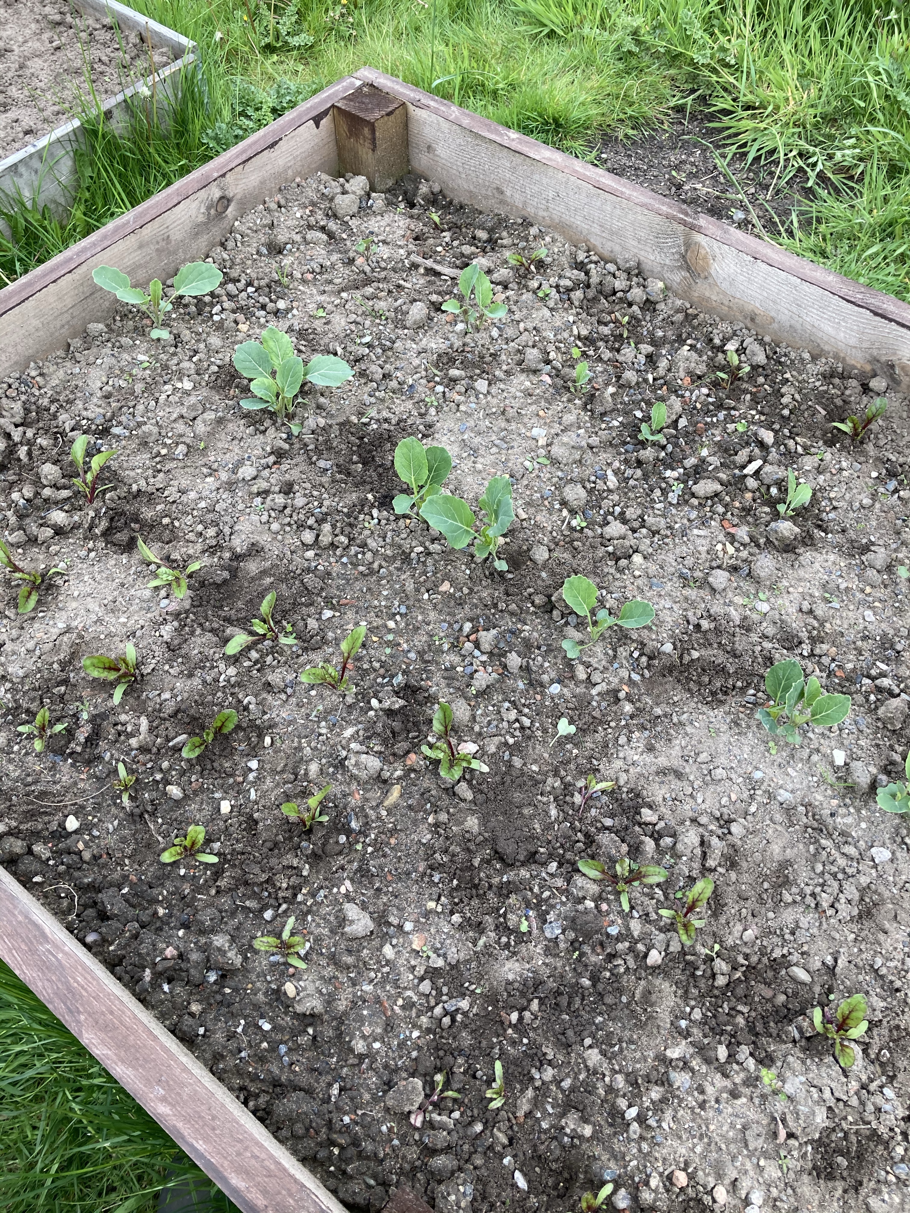 We then thinned out the sprouts, Cauliflower and beetroot. Unfortunately the carrots still don’t seem to be growing in the mixed bed. But the scarlets that we planted in the smaller bed on its own, have really started to come up now and will also need thinning out soon.