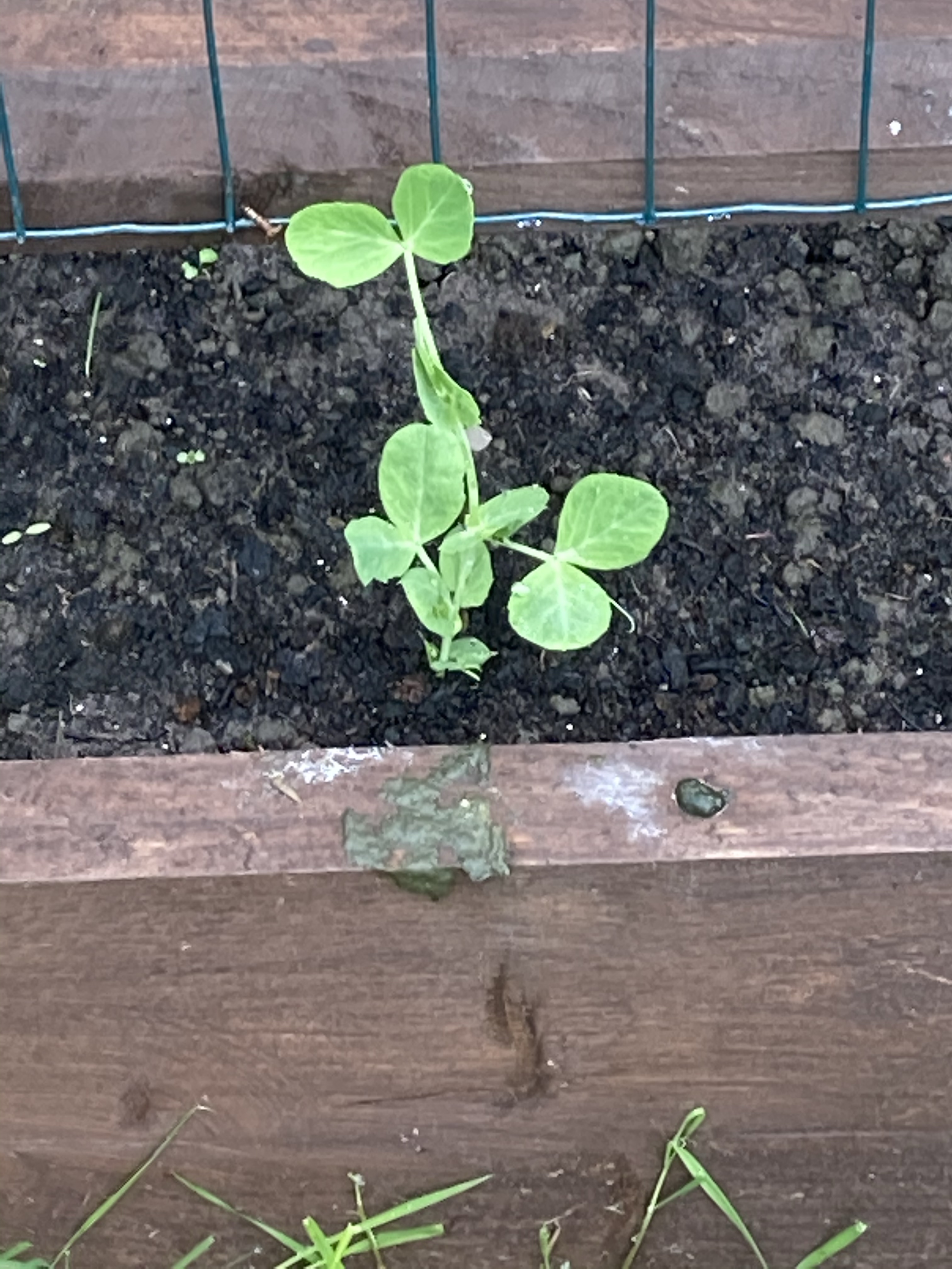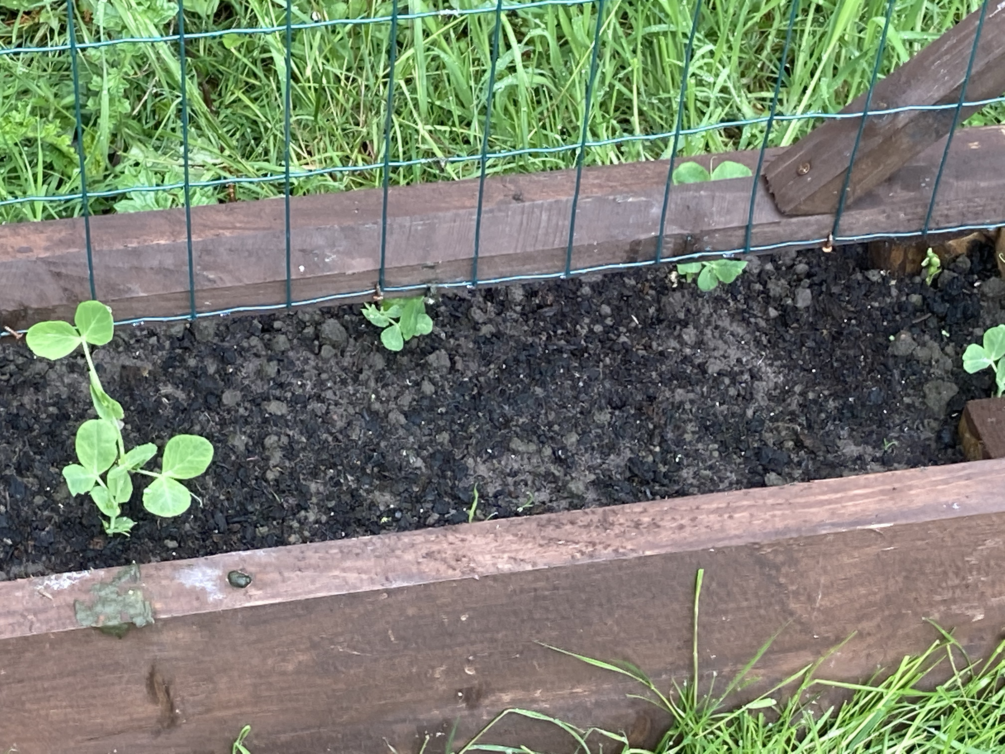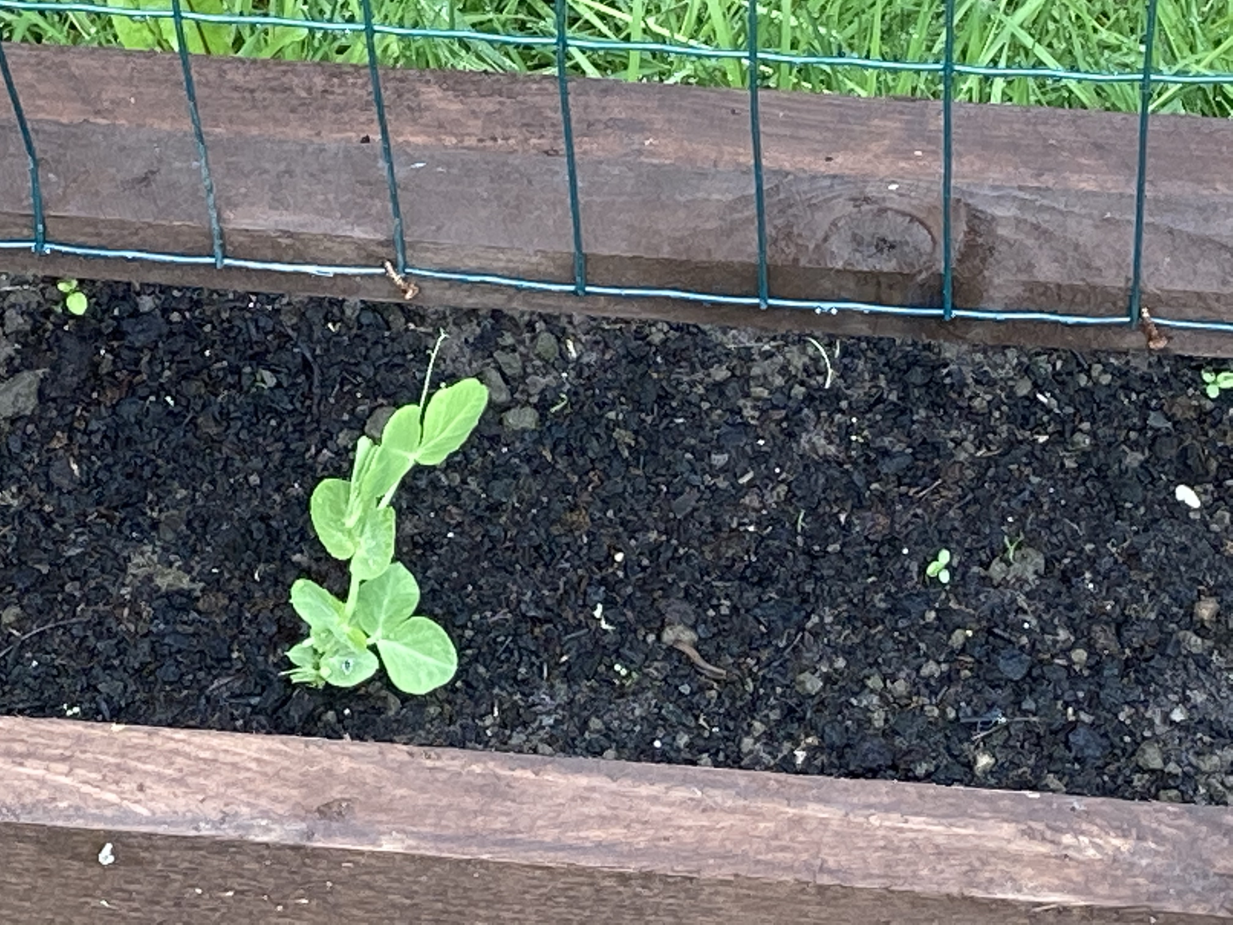 Although we planted quite a few peas, it seems the birds must have had their share, as we only have a few growing. They are shooting up now though.