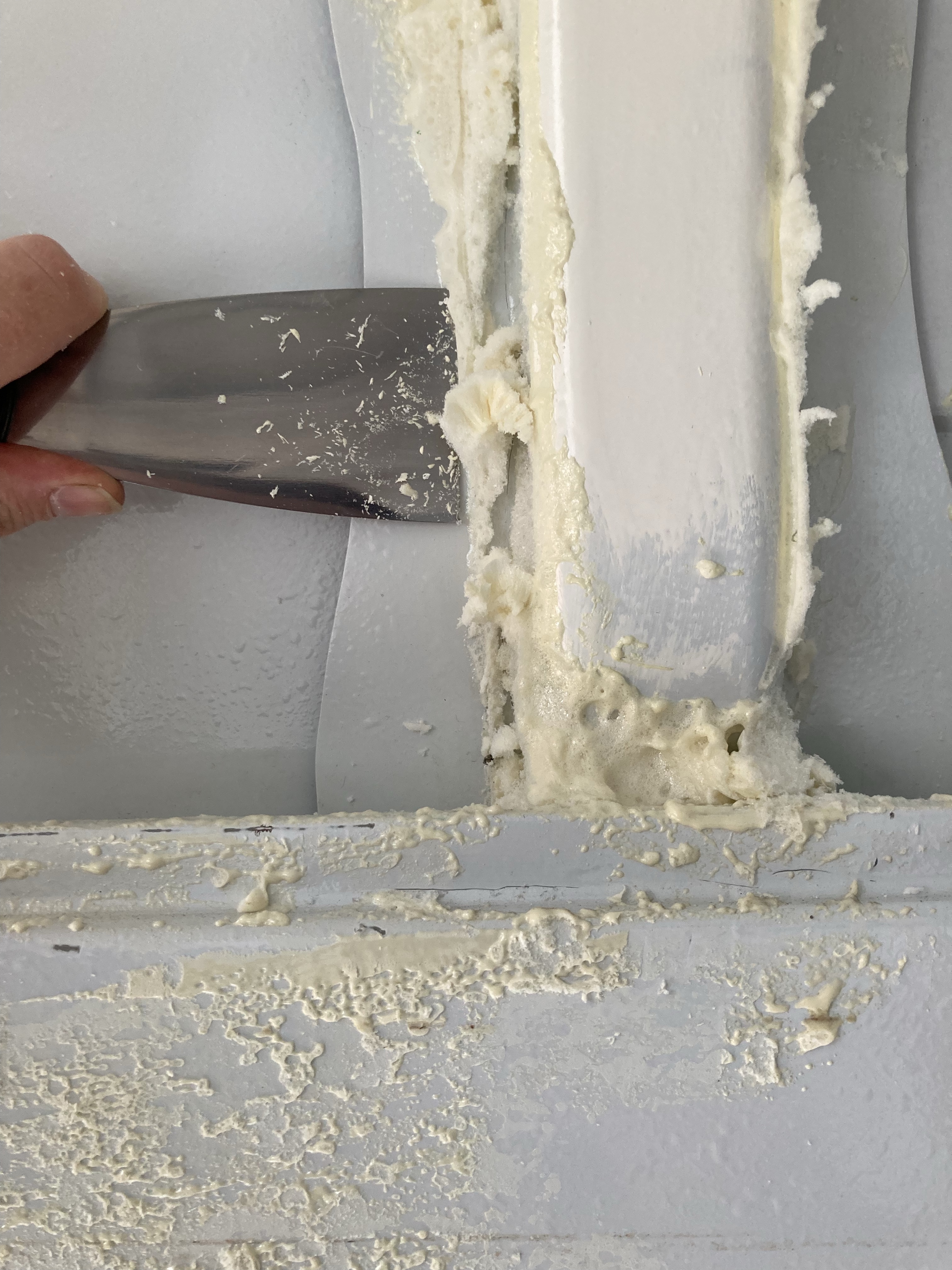 We had to also go over the ceiling and sides to make sure no expanding foam or silicone was left, scraping this off meant lots of scratches on the paint, which needed to be covered straight away.