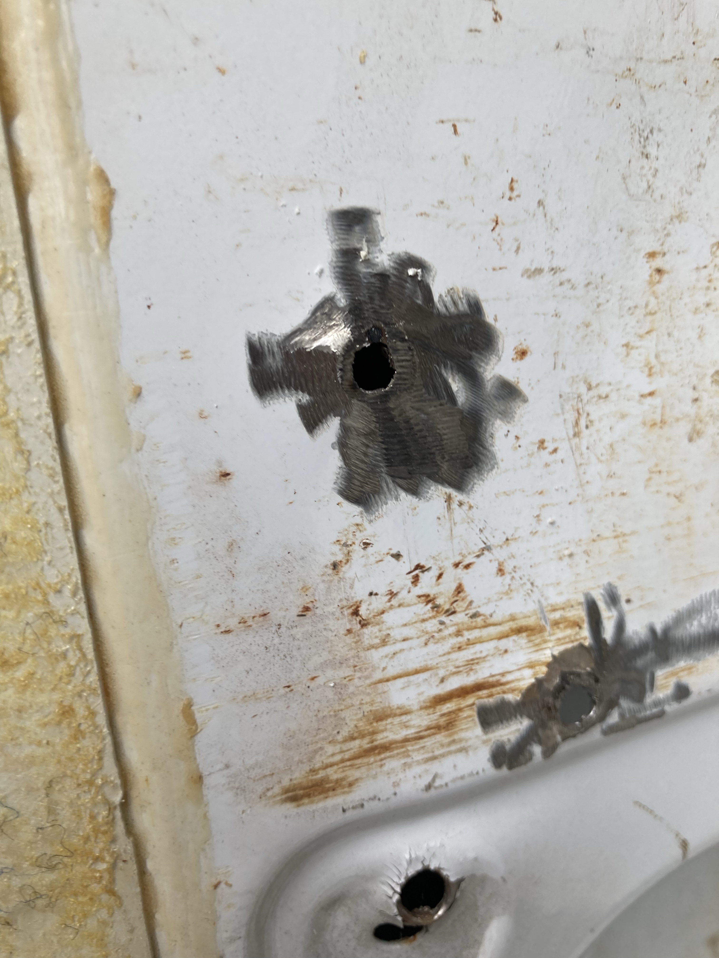 He then painted over all the exposed metal with red oxide paint to prevent any more rust. As you can see, it looks like a blood bath 😂.