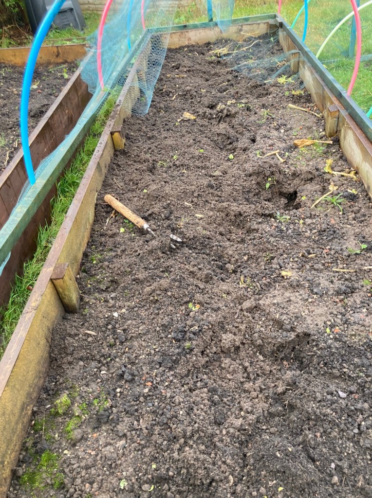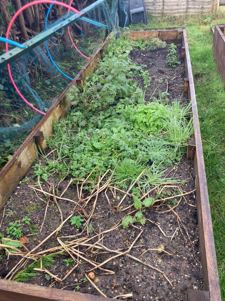 Today I spent some time (alot of time) clearing the raised beds. One of which STILL had our failed sprouts in looking sad and lets face it, a bit gross! The roots ran deep and some didn’t want to leave their bed, but they had to go.