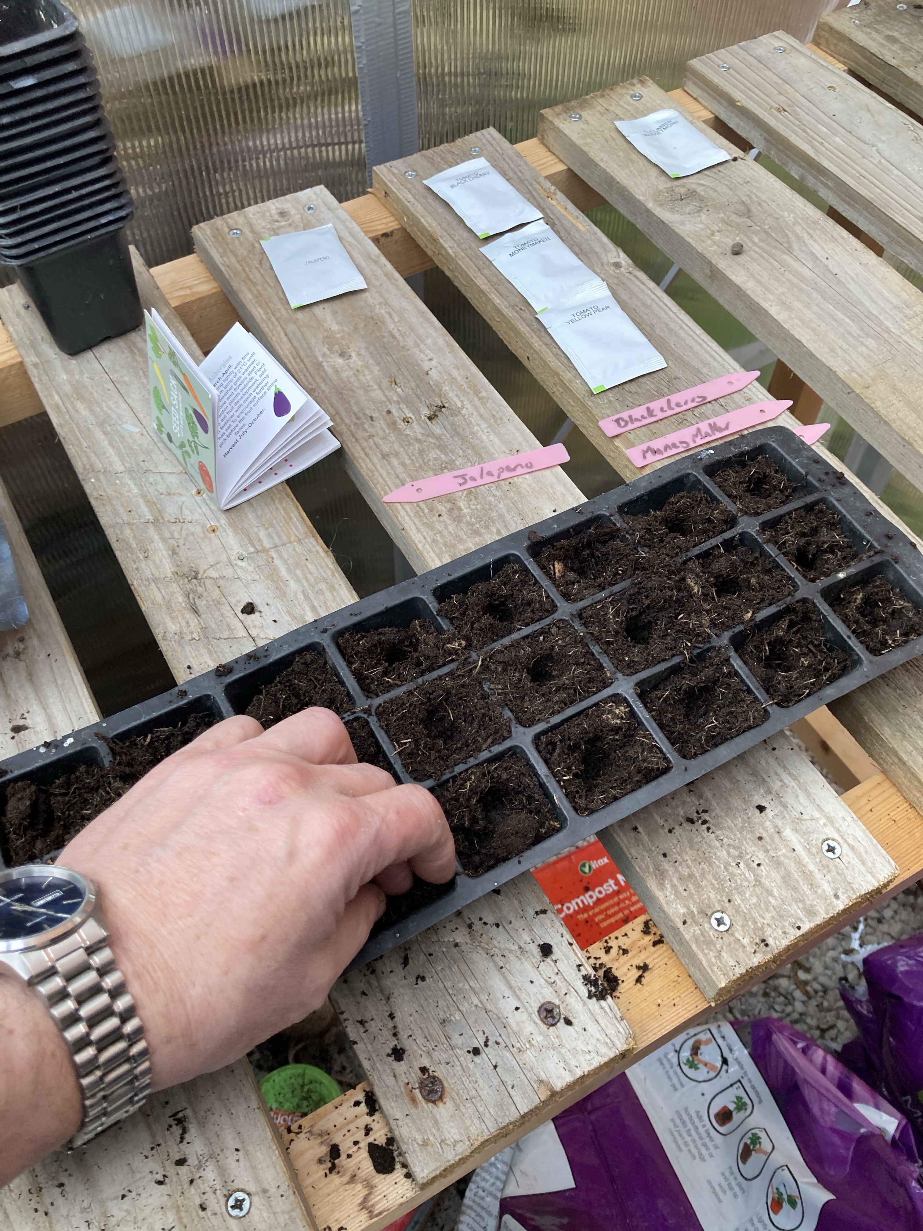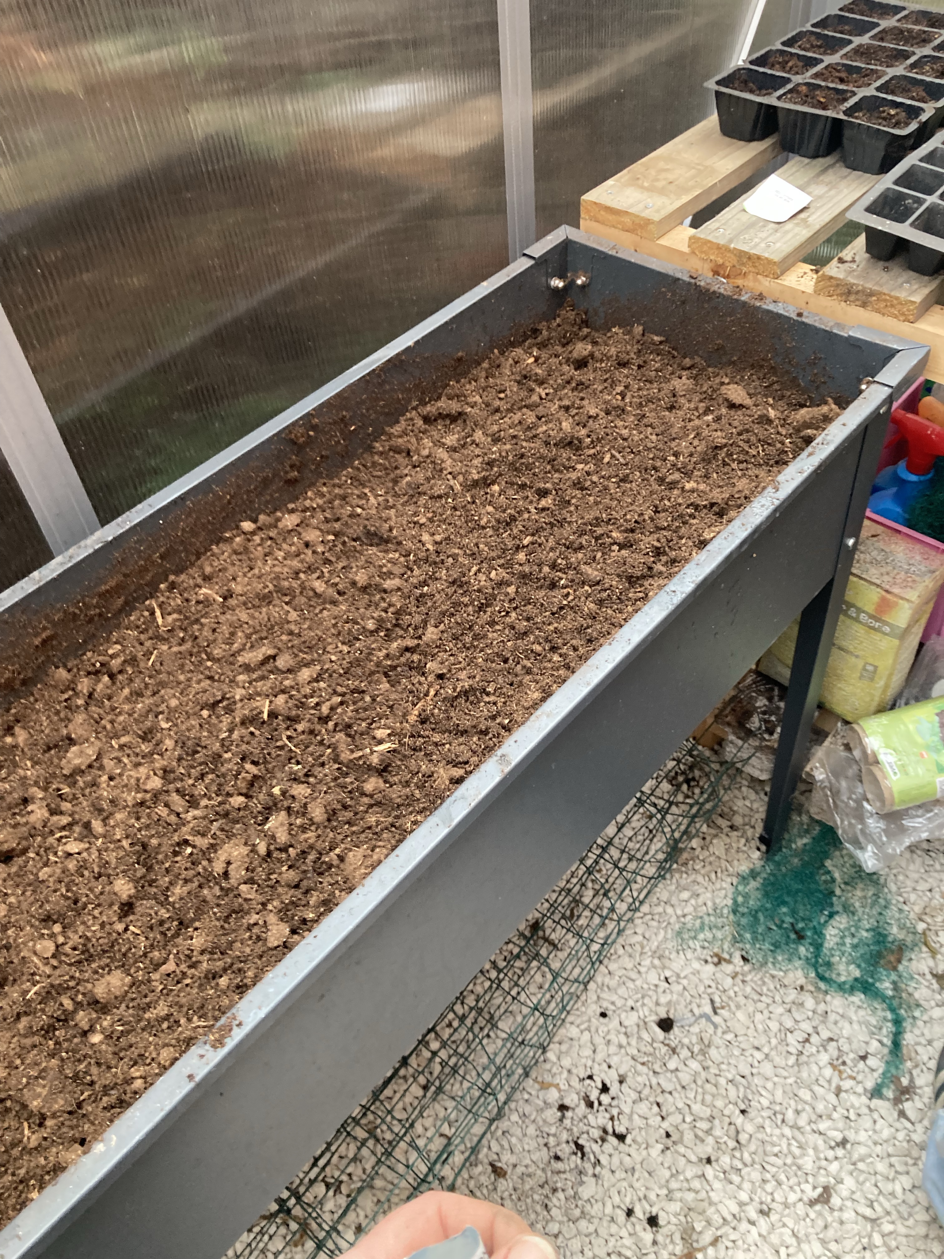 We started off the greenhouse plants and are still deciding what to start off for the outside raised beds. I got a gift bag of lots of different seeds for Christmas, so we are going to make the most of those and we also went out and bought lots of seeds and have filled our new seed box, so we have lots of options.