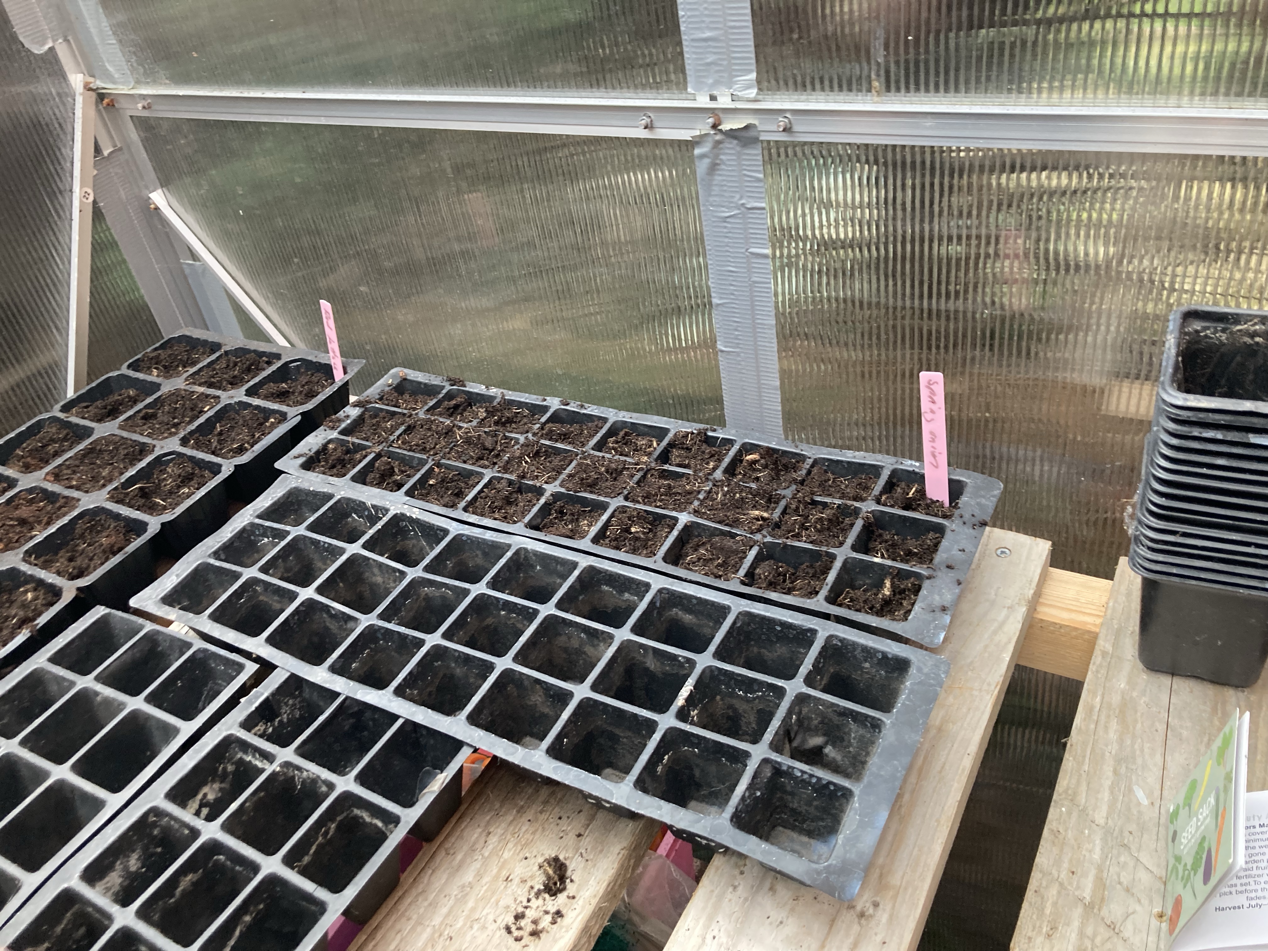 So far we have done a bit of weeding and cleared out the greenhouse. We have moved the bed that we will use for the peas, but the trellis part broke in the storms so we will think of something to make or fix the old one.