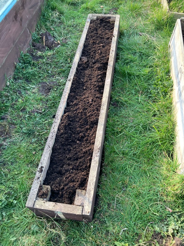 The other large raised bed has a mix of different vegtables in. Radish, Beetroot, Sprouts (yes we are trying again even though we have failed 2 years straight), Cauliflower and Parsnips.