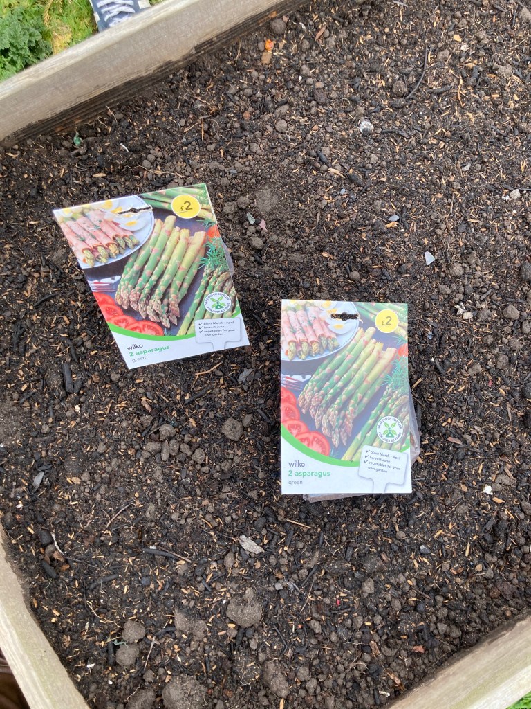 We have a seperate raised bed for Broccolli, one for carrots and one for red onion. The red onion raised bed already had some red onions growing from the onions that bloomed last year, which was a nice surprise. The far bed we have put some asparagus, which if they do grow we won’t be able to harvest any for a couple of years just so they can get established, but they will hopefully come back year after year. We will also use the raised bed with the aparagus this year to grow pumpkins later in the year. The peas have been started aswell in there origional place from 2 years ago, as last year we got a grand total of one pod! as aposed to the hundreds we got the year before.