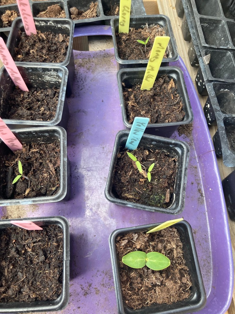 The seeds we started in the greenhouse are now sprouting into some beautiful seedlings. I really get a kick out of seeing them popping through the compost.