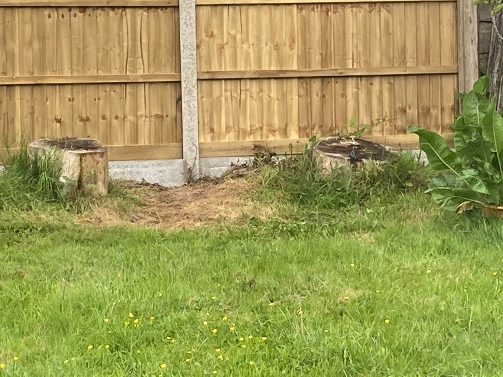 Well last week we had a shiny new fence after the panels were blown out in the winds some weeks back So with the garden looking half decent it prompted us to contact Tarporley Tree’s & Garden Services again and see if they could come and finally after 2 years (but actually more like 7 years since the trees were cut down) get rid of the stumps, so we could put our idea of a perennial food bed in there place.