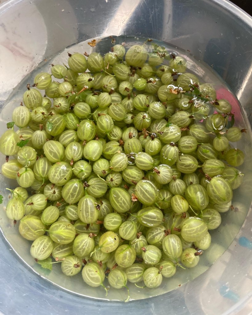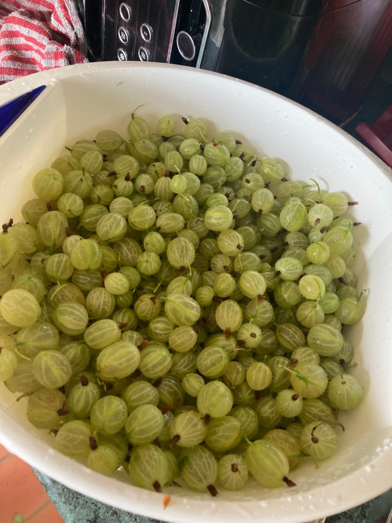 All the gooseberries are now off the bushes, we have about six bags altogether. I’m hoping to make some gooseberry chutney that will be nice with cheese and maybe some jam or just make some pies and gooseberry fool.