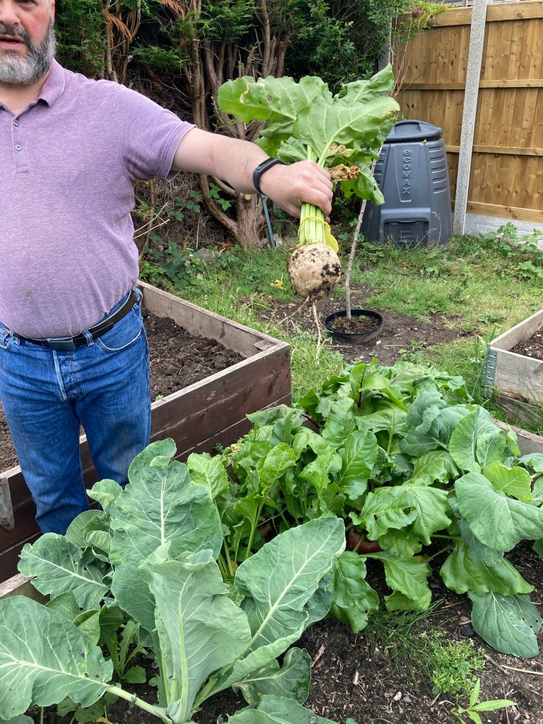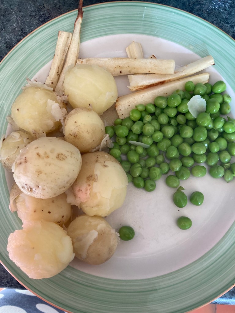 We have have picked most of the pea’s now. We hadn’t looked into what type we had bought and they grew very short and bushy. We were expecting the tall 6ft variety we had the first year that were prolific growers, these unfortunately didn’t get quite so much on them. They tasted lovely but we have only had about 6 meals worth, and that doesn’t quite keep you going. We have also had all our early potatoes out and have been enjoying them with most meals. We have now replanted more seed potatoes to try and get an autumn crop. We haven’t done this before, so we will keep you posted on how they are coming along. We pulled one of our parsnip to see if they were ready, they were a little on the skinny side so we left the others in. but I cooked up the one we pulled and had that roasted for tea.