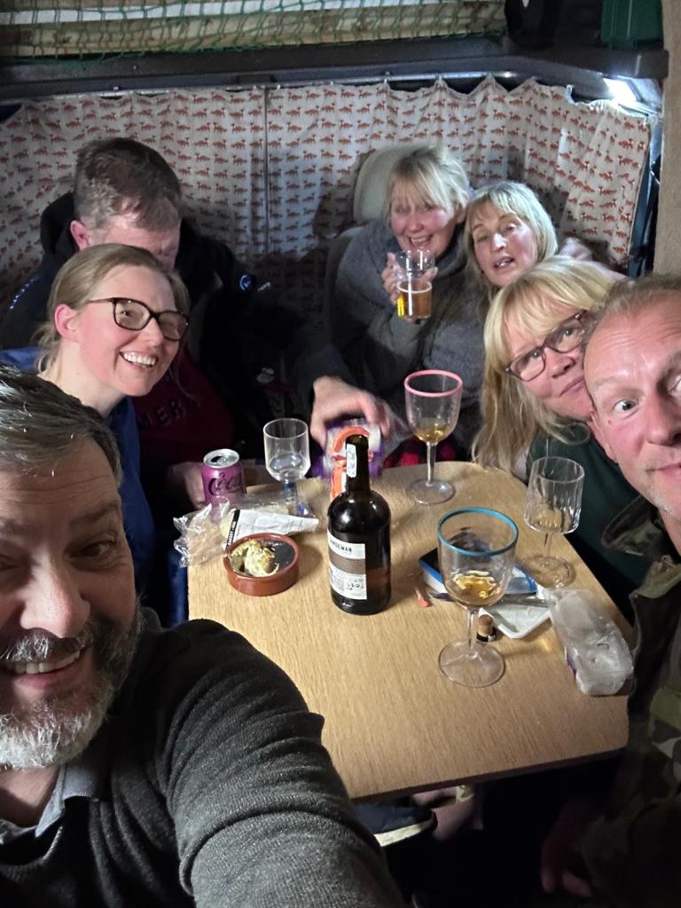 In 2024 we took a overnight trip to Lady Heyes Caravan Park in Frodsham Cheshire. We went along with a group of friends and family to Lady Heyes and had a great night, especially as one of the pitches had a hot tub! It was harsh getting out of the tub with the weather still being cold in March, but worth it! There are other things to do close to the site. It has shops close by that are open in the day. There’s also a cafe if you fancy a cooked breakfast in the morning. We traveled in 3 Vans between us. Trevor’s layout makes it the best one for sitting in a group round the table. As you can see we made the most of the night with drinks and snacks.